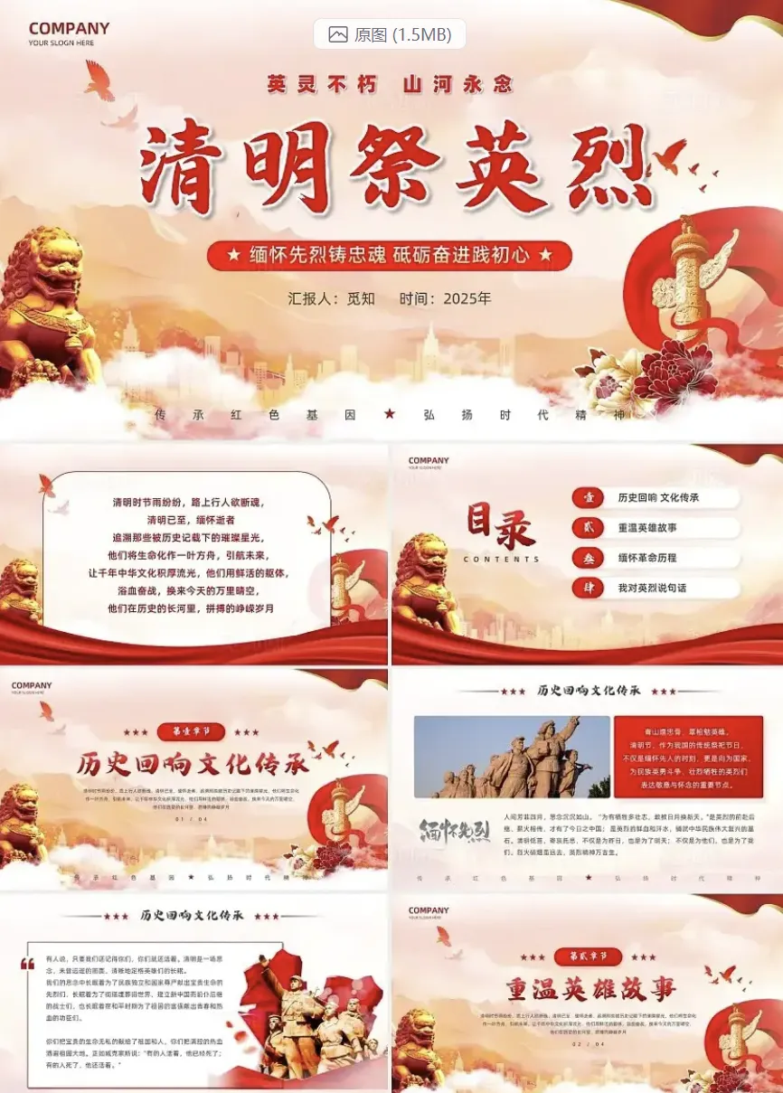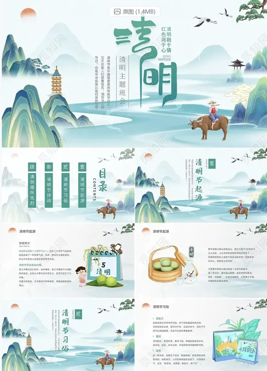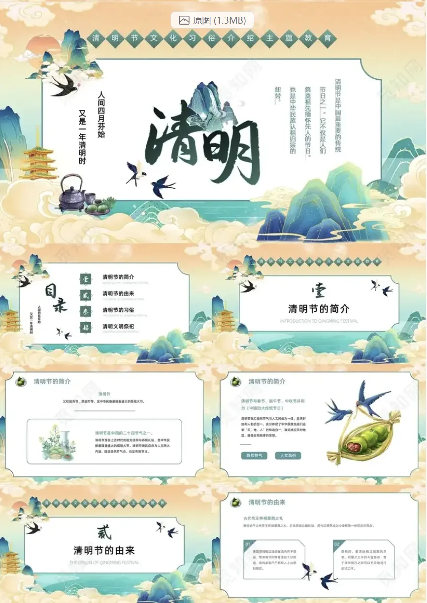 收藏!高颜值清明节 PPT 模板,免费可编辑,班会 / 教学都合适!(免费分享附下载链接)