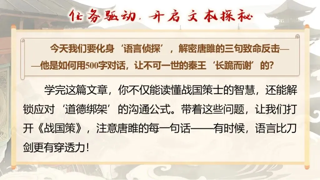【教赛PPT模板—免费分享】示例:《唐雎不辱使命》(接定制)