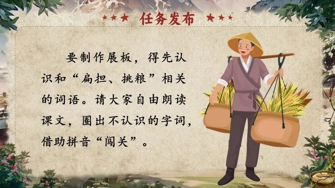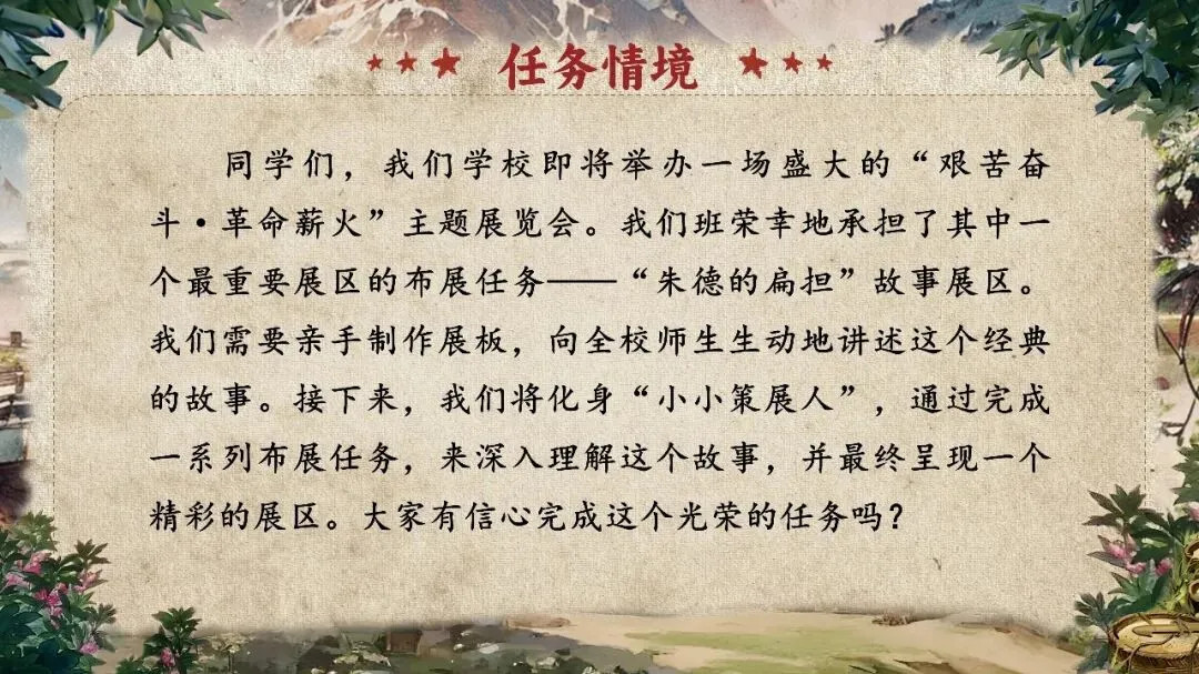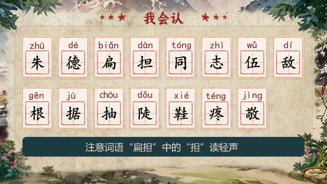 ��【免费教赛PPT模板】二上《朱德的扁担》PPT展示
