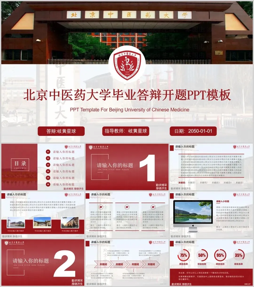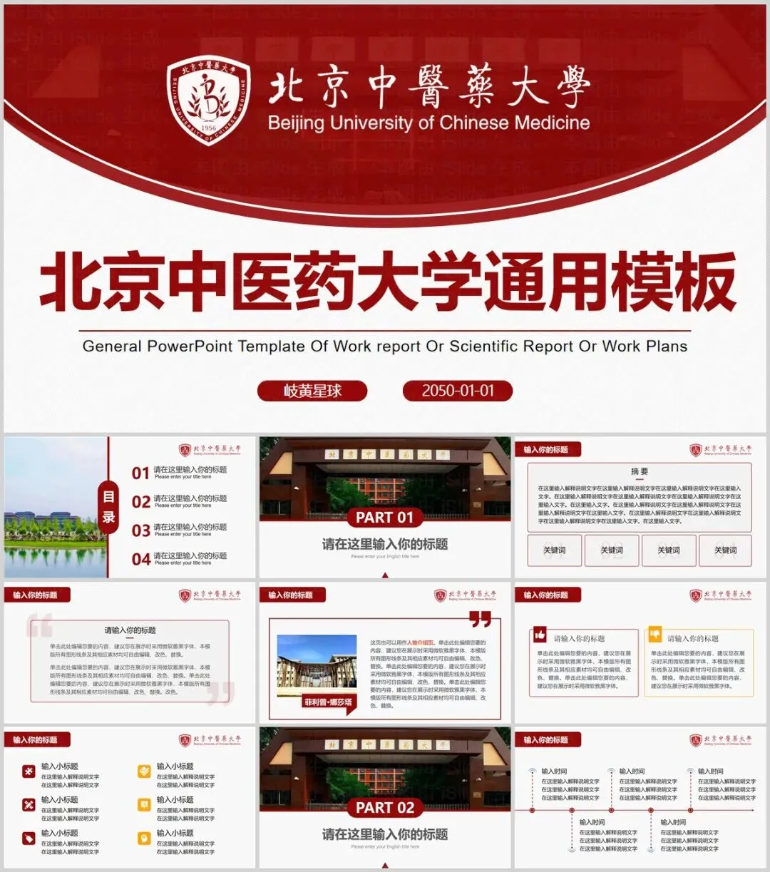 北京中医药大学PPT模板