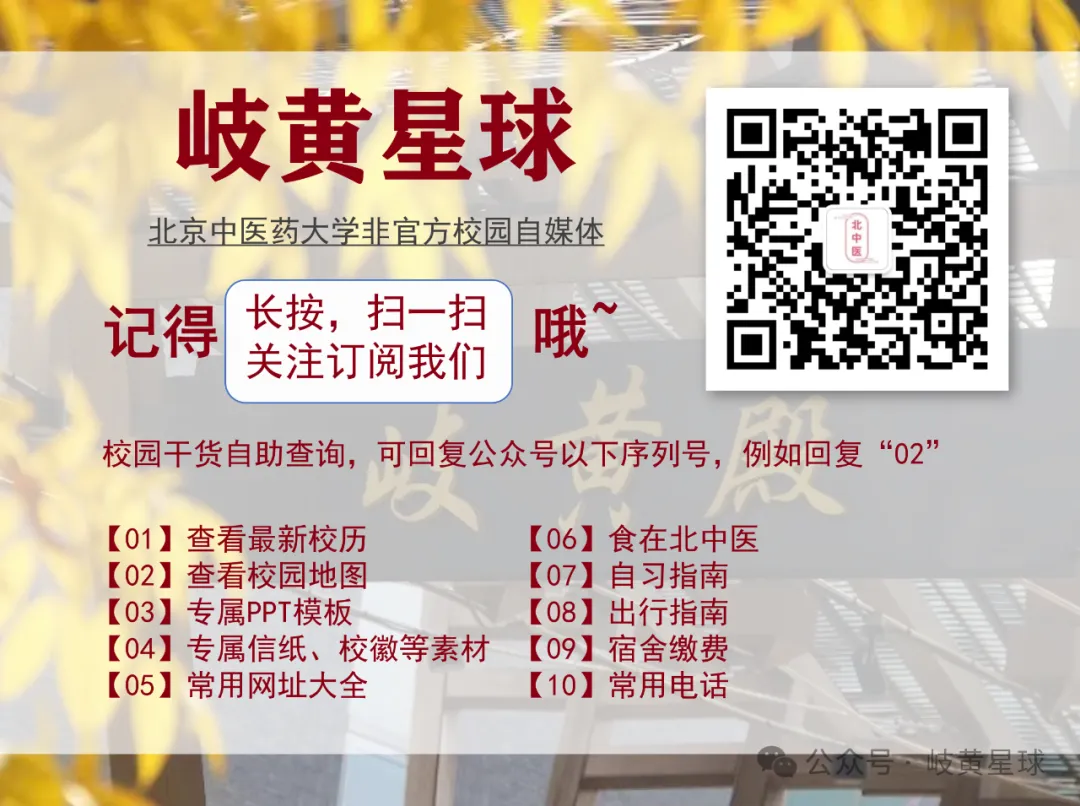 获取方式:扫码关注【岐黄星球】后台回复:北京中医药大学