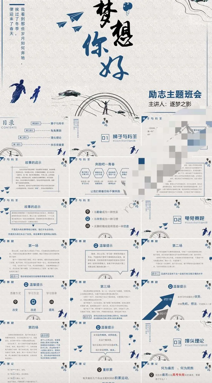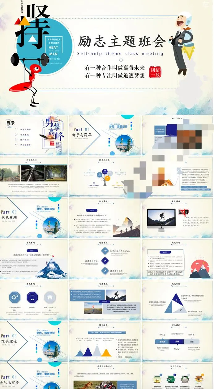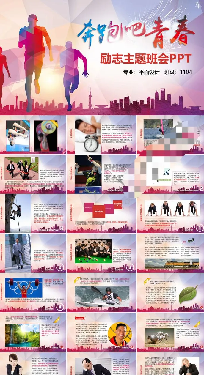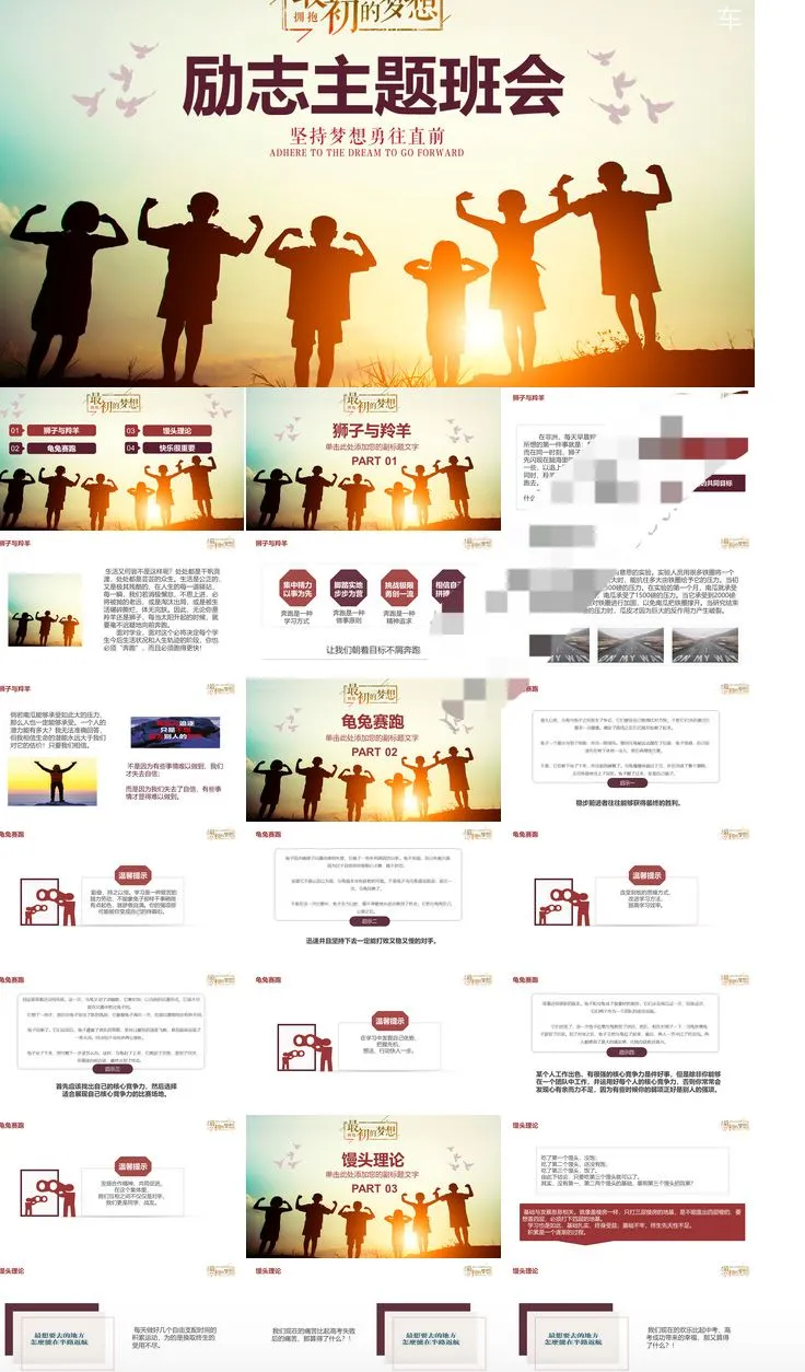 精选8套励志主题班会PPT模板青春正能量坚持梦想小中大学生演讲动态素材