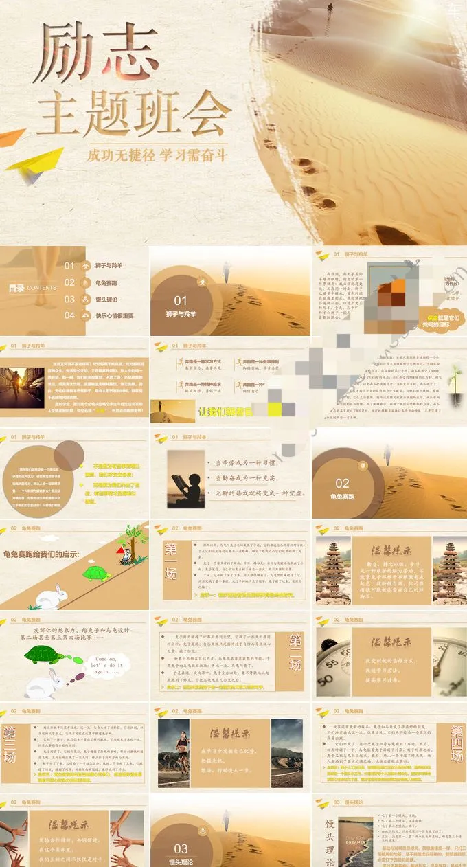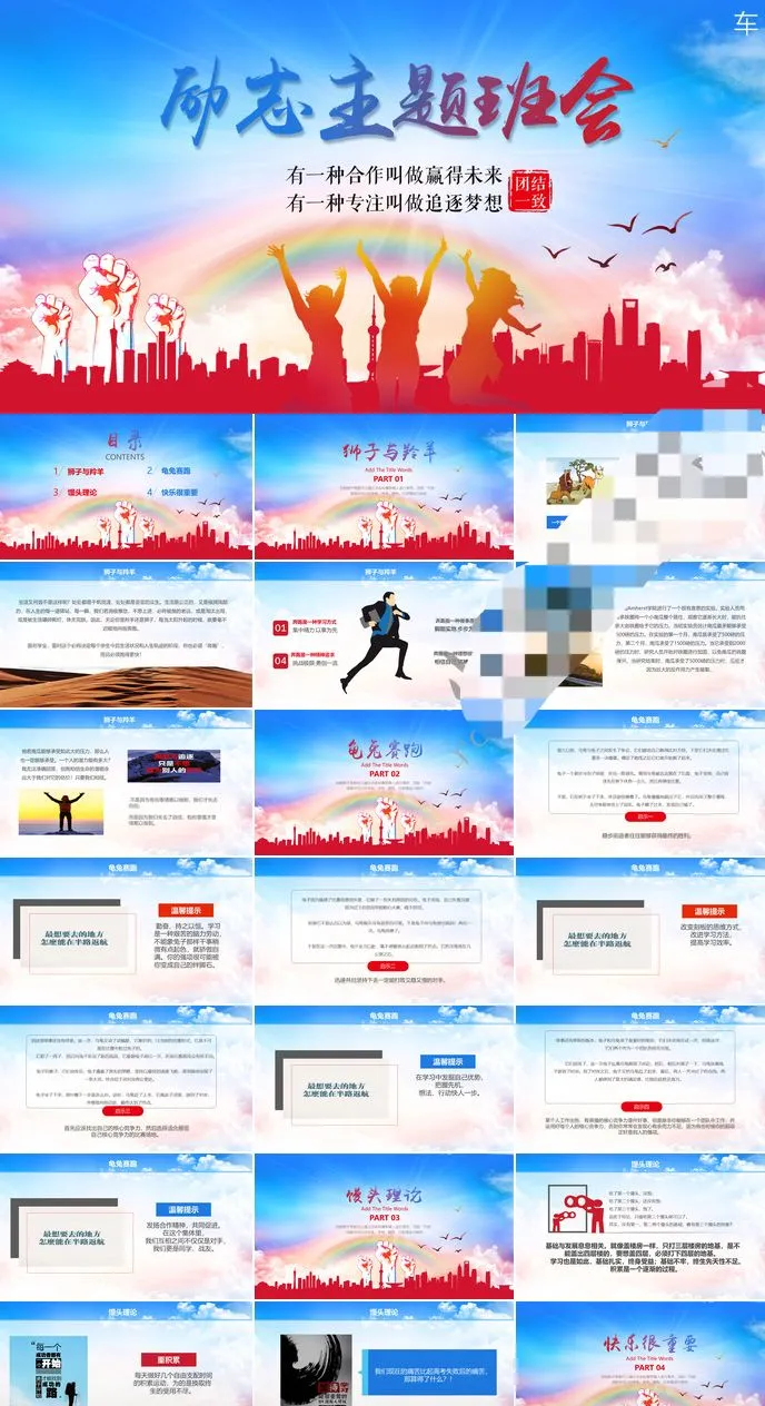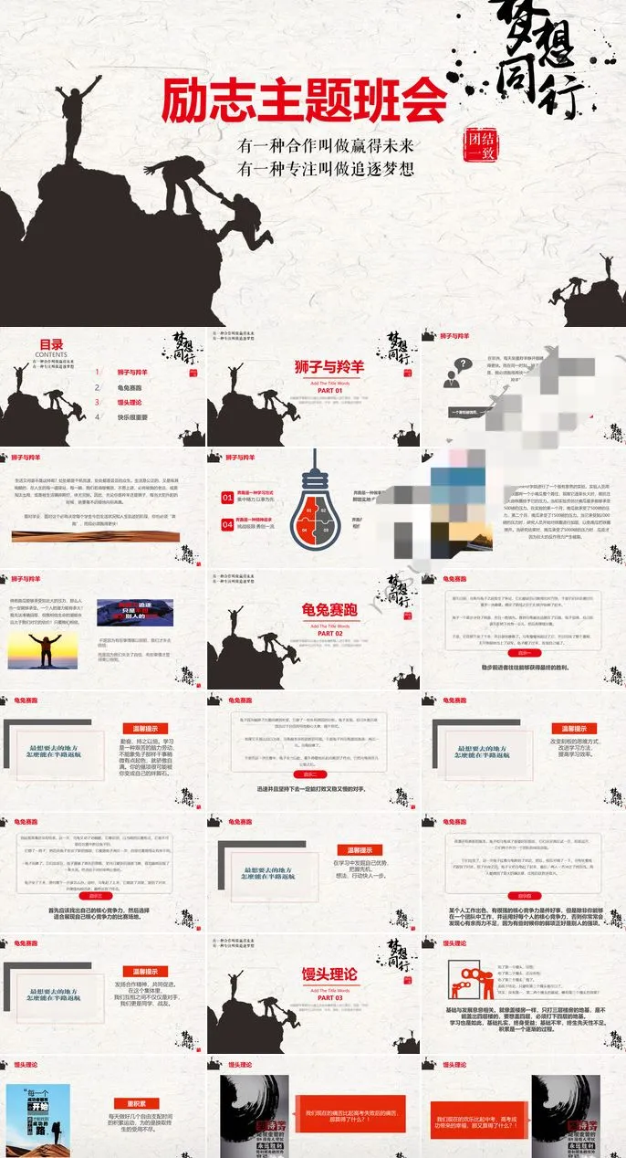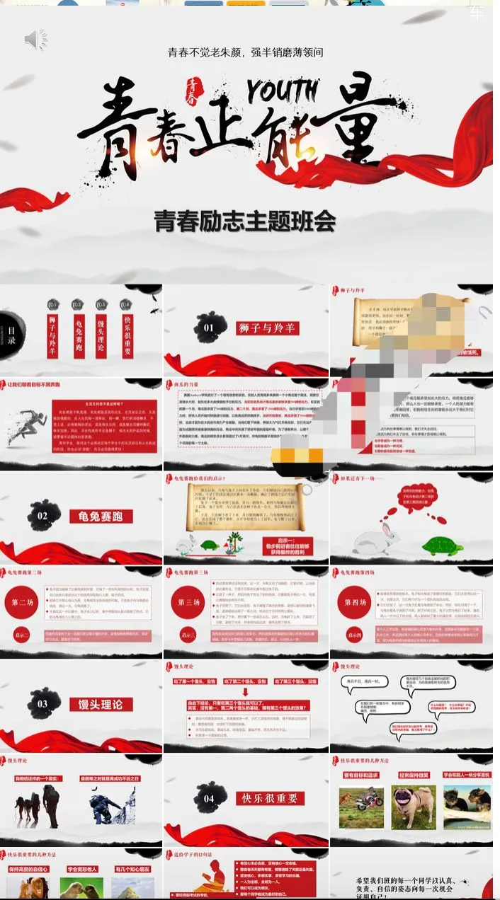 精选8套励志主题班会PPT模板青春正能量坚持梦想小中大学生演讲动态素材