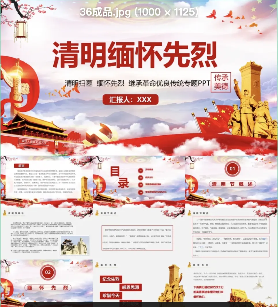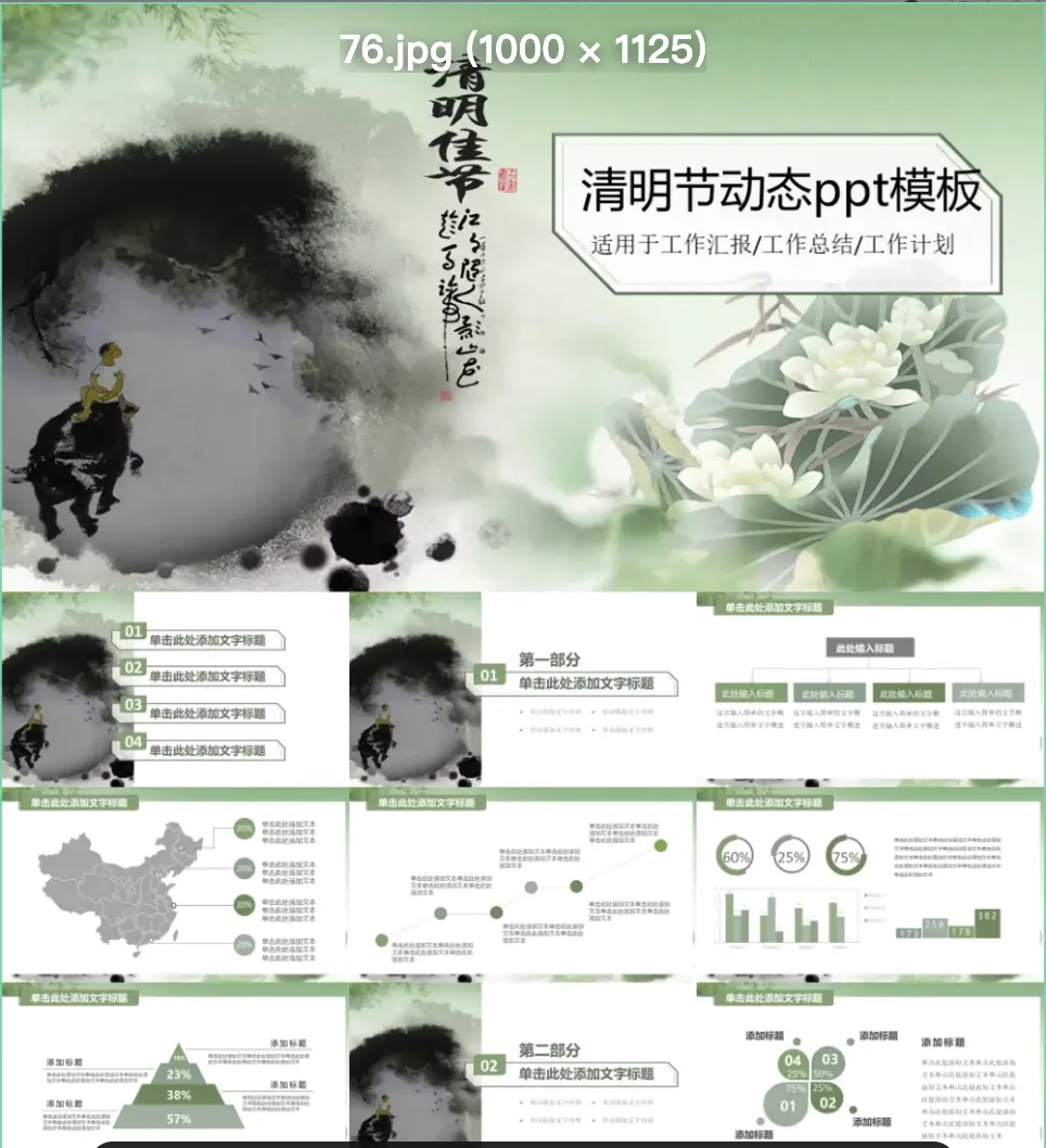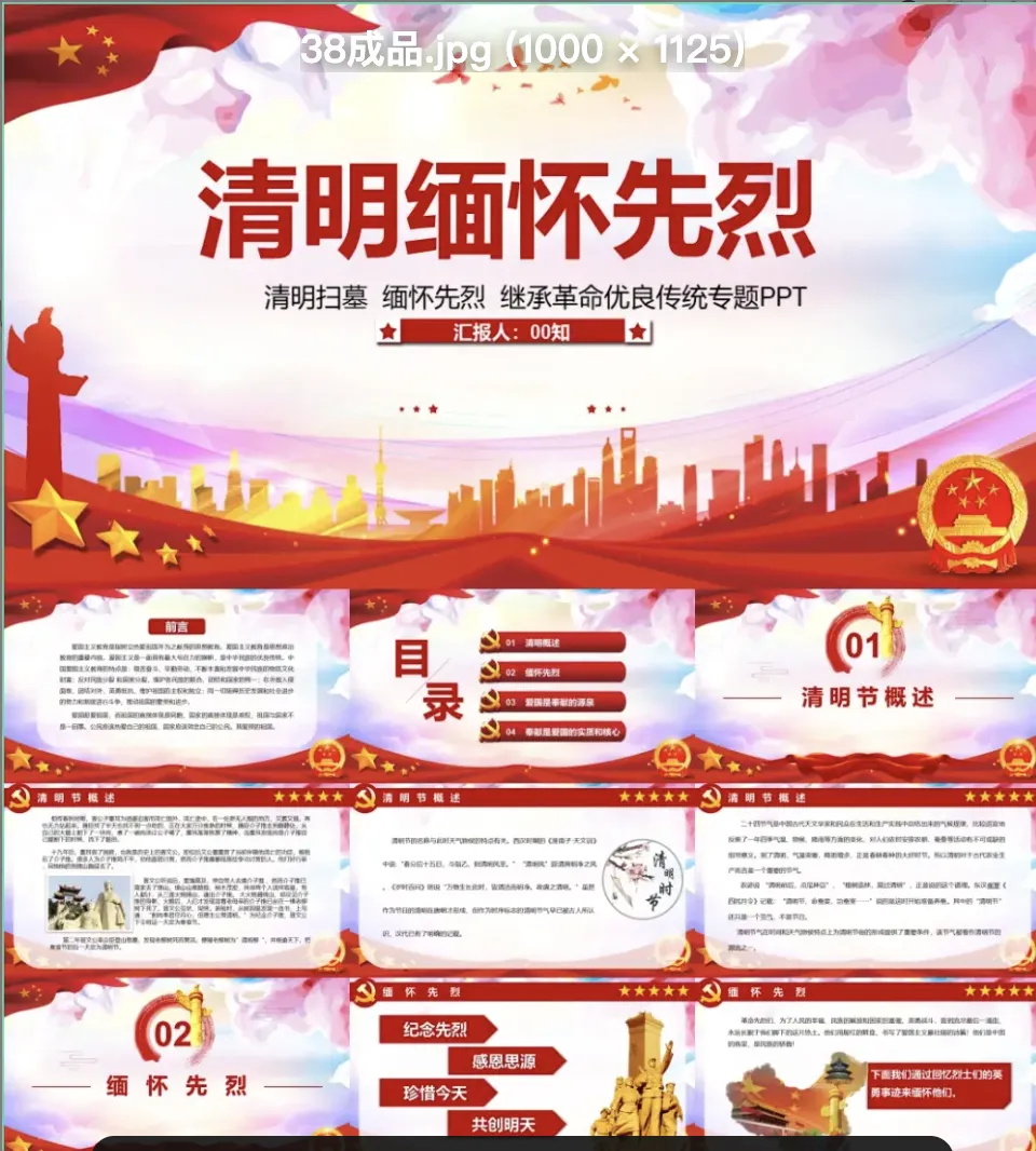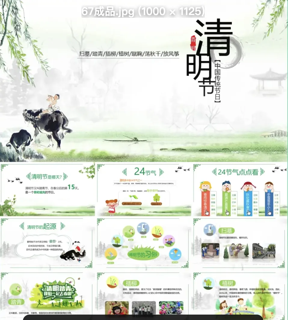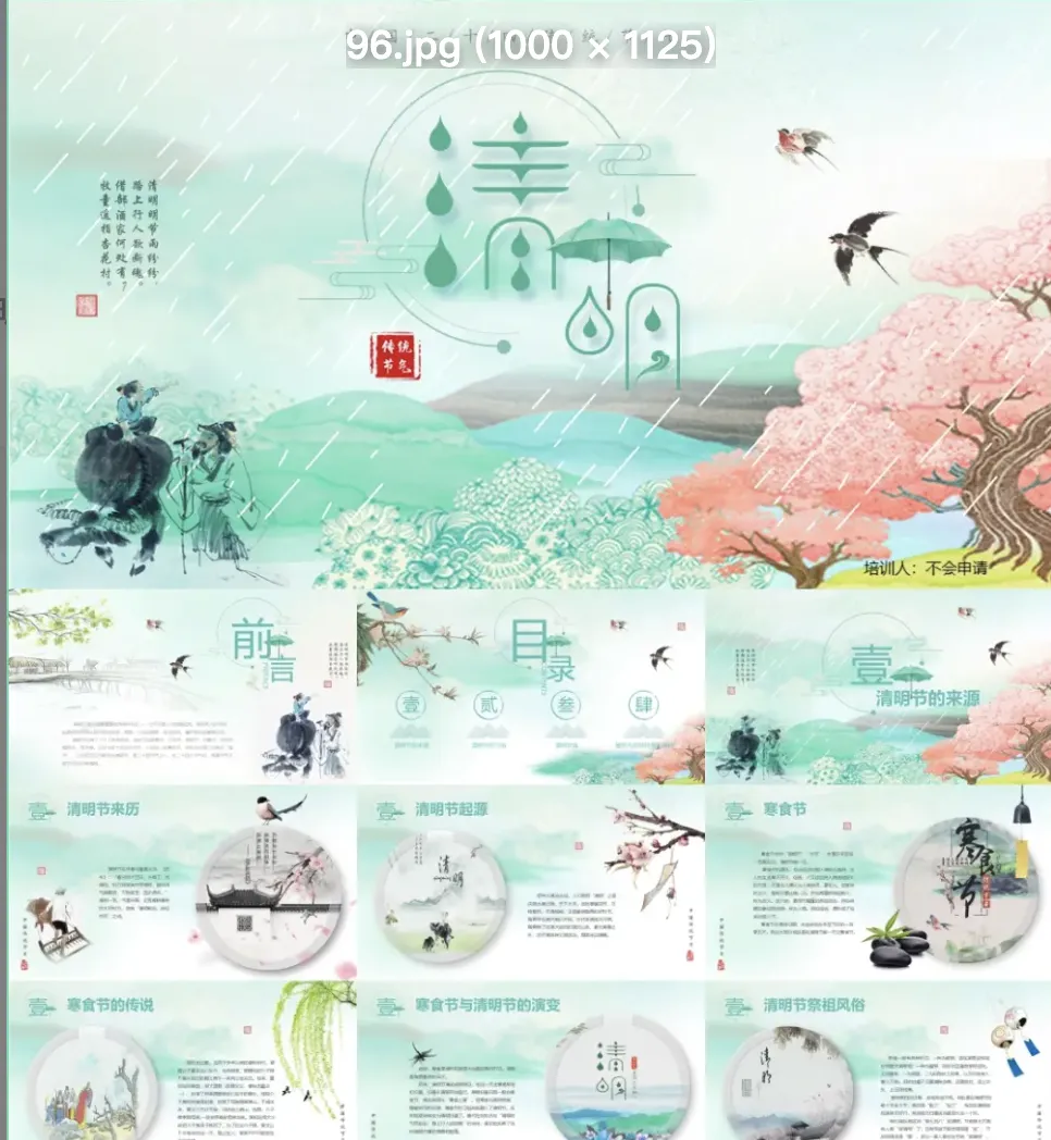 本文分享的是「清明节ppt模板,只有部分预览图,更多的点击链接」