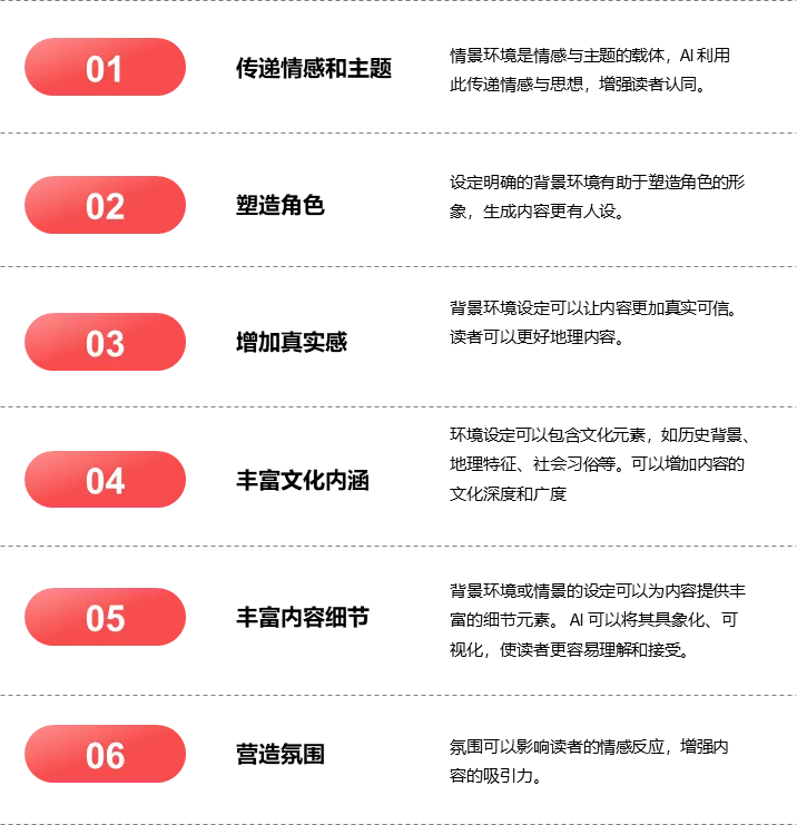 在 AI 进行内容产出过程中,设定明确的角色是决定内容价值与导向的核心要素。它如同为内容创作安装“定位系统”,直接影响信息筛选维度、表达立场和受众共鸣点。在AI 内容产出中,设定角色、情景或环境能明确目标导向、约束内容边界,塑造人格化特征以增强感染力,构建场景真实感激活用户代入感,匹配用户需求层次提升实用价值,规避伦理风险确保内容合规,强化品牌调性沉淀用户认知,从多维度提升内容针对性、真实感与价值。如图1-2;