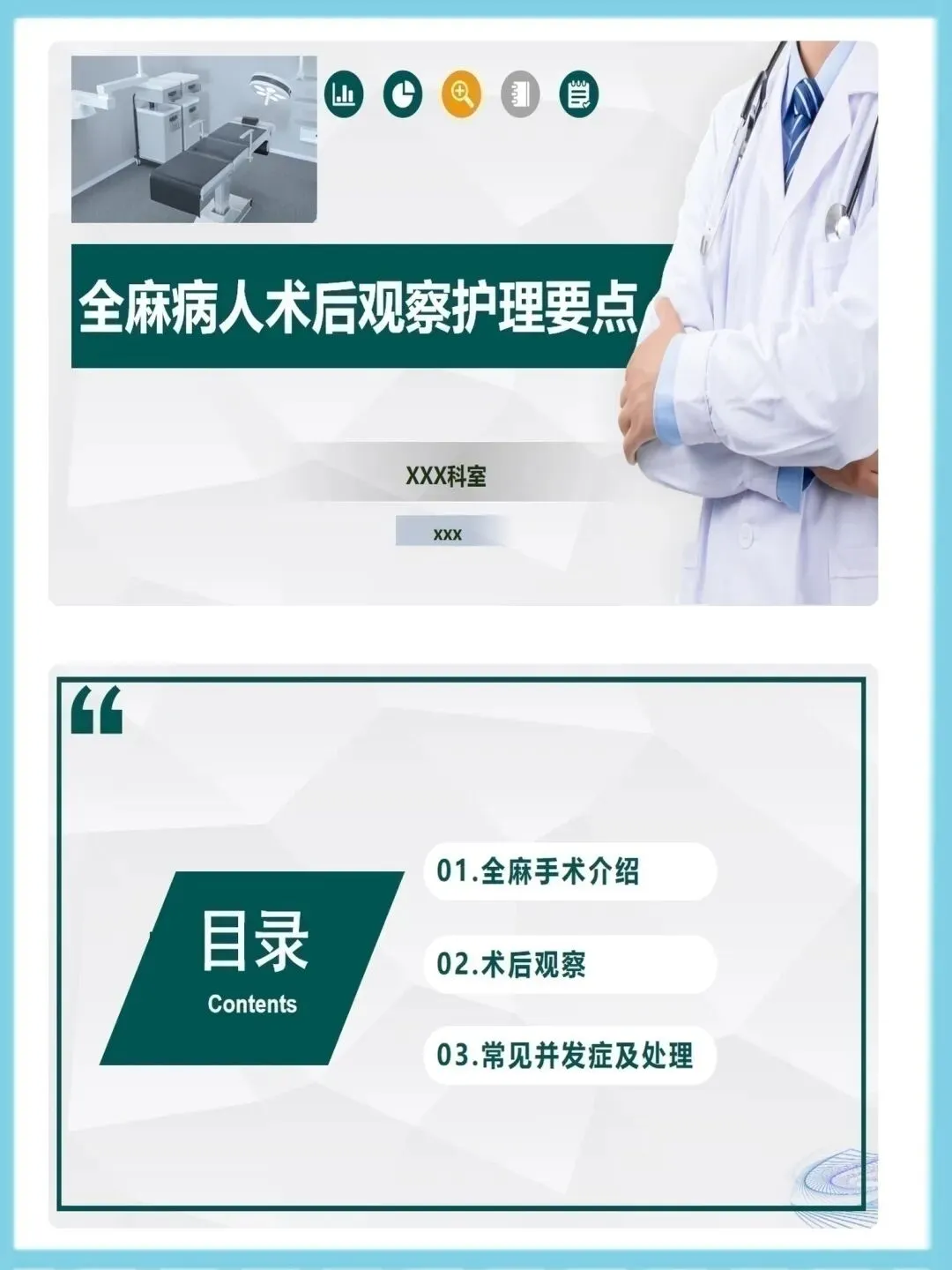 各位同仁,大家好。本次为大家讲解全麻病人术后观察护理要点,围绕全麻手术相关知识、术后核心观察内容及常见并发症处理展开,旨在规范术后护理流程,提升护理质量,保障患者术后康复安全。