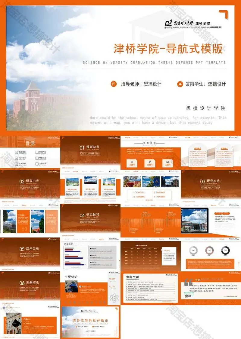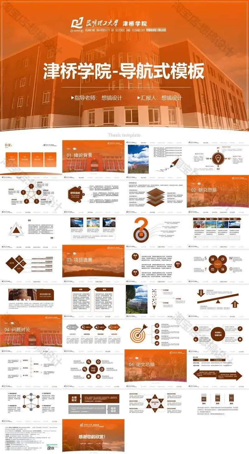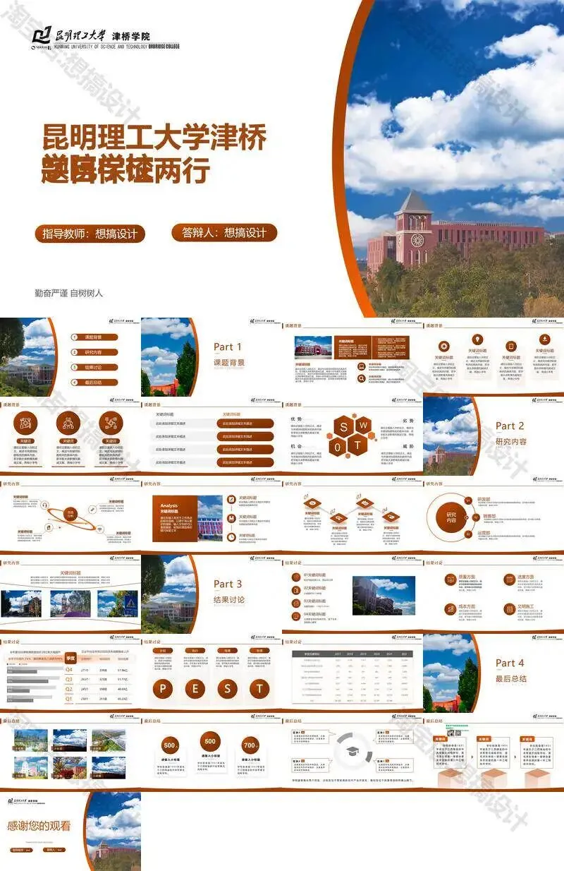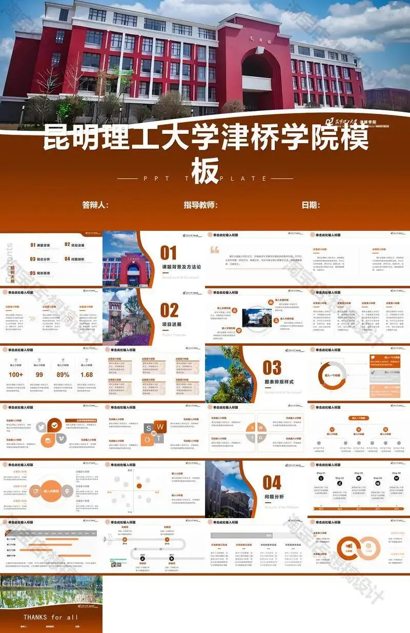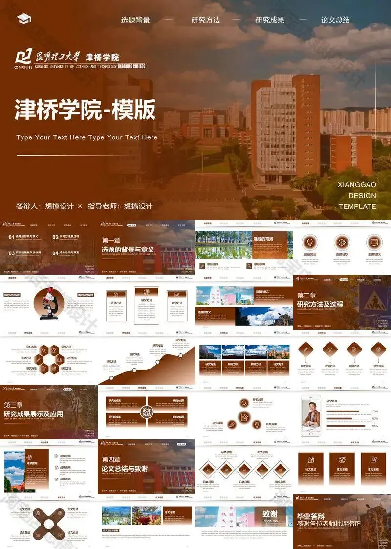 昆明理工大学津桥学院PPT模板复试中期毕业答辩组会汇报