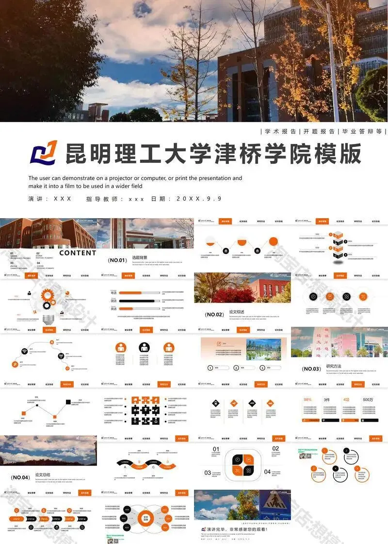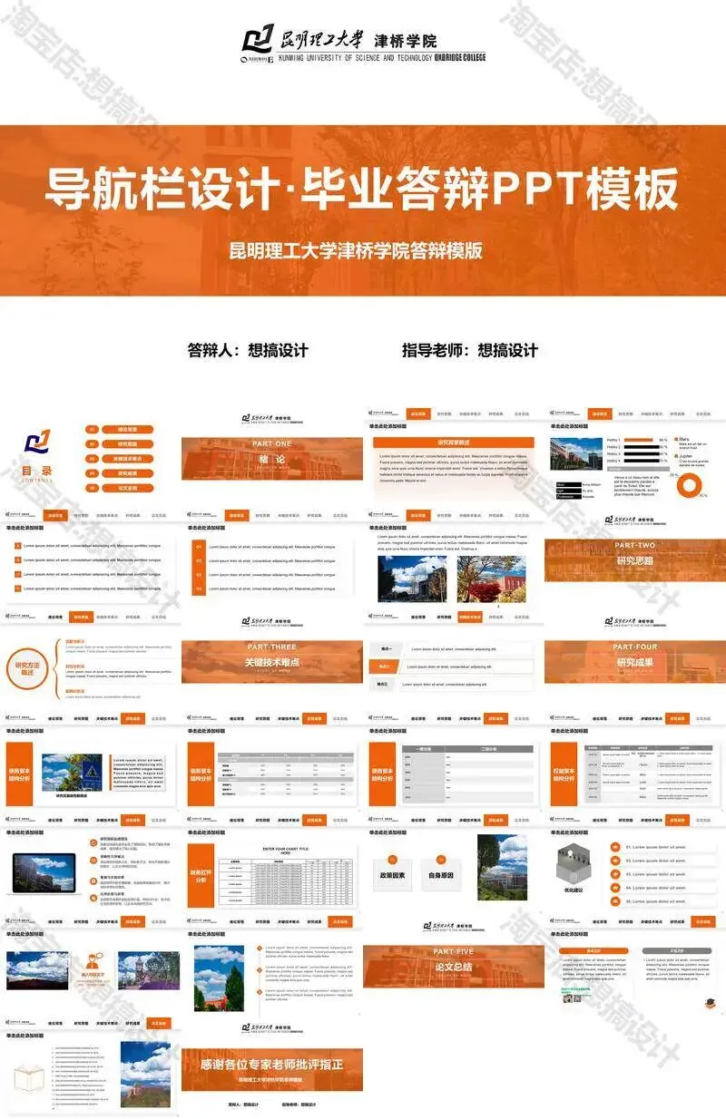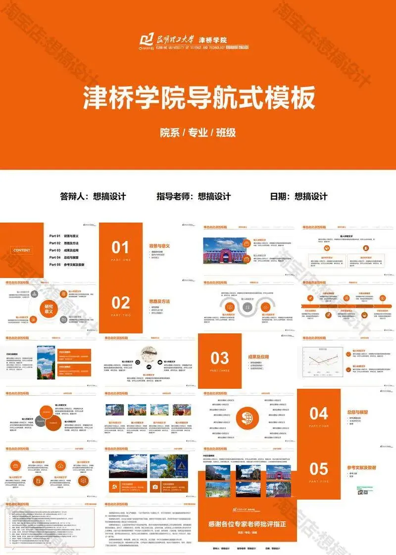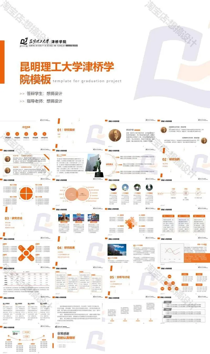 昆明理工大学津桥学院PPT模板复试中期毕业答辩组会汇报