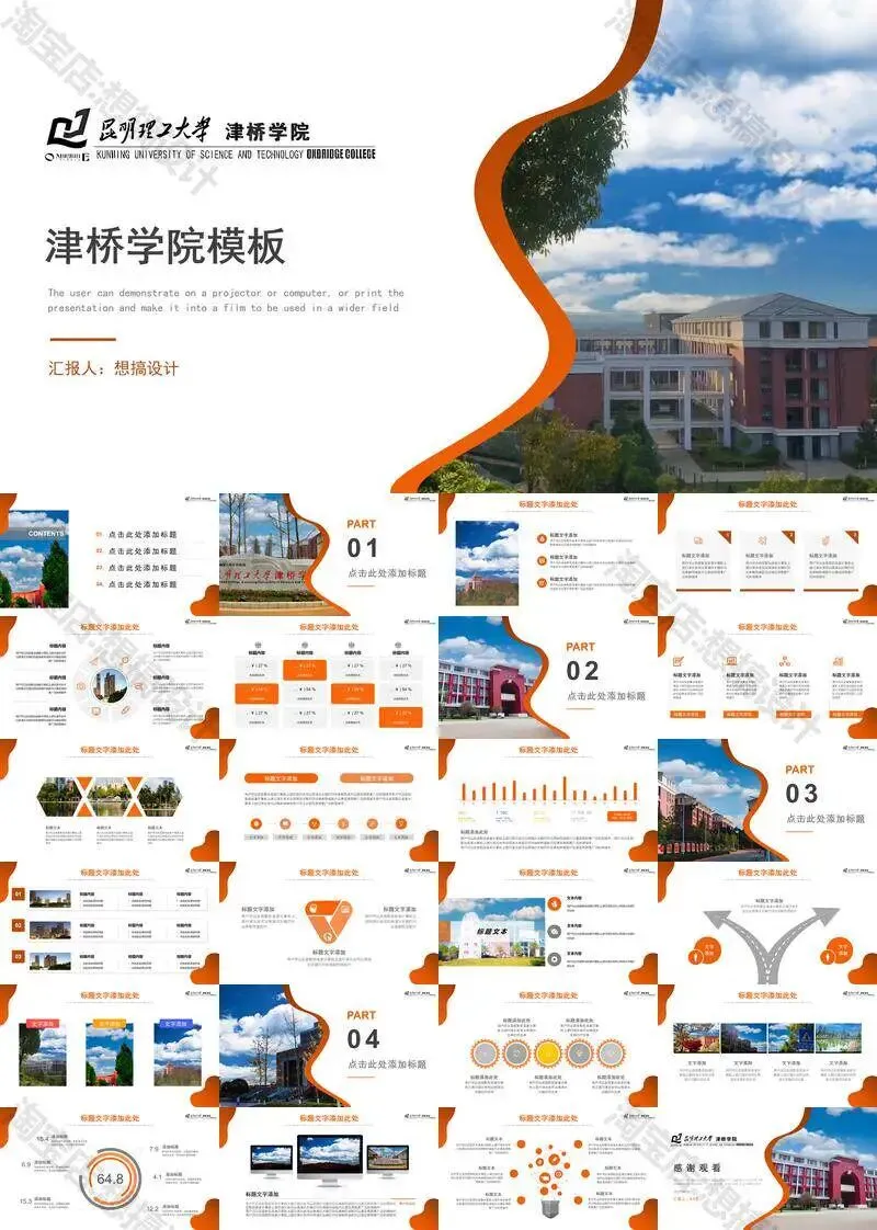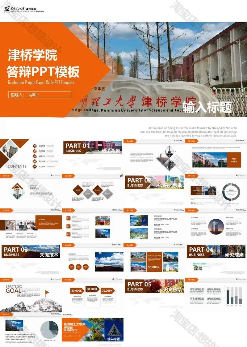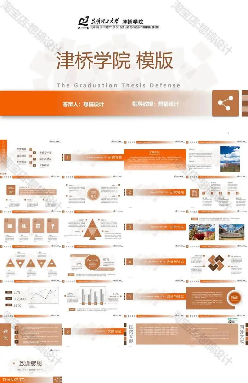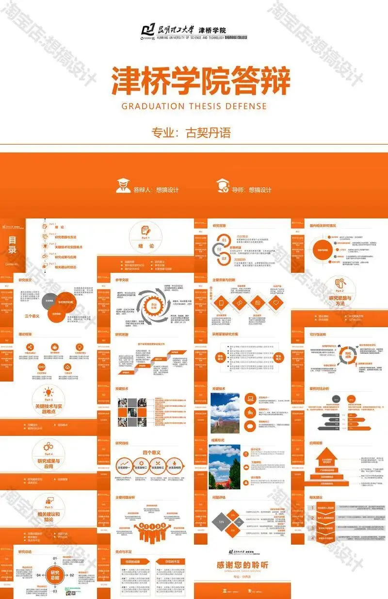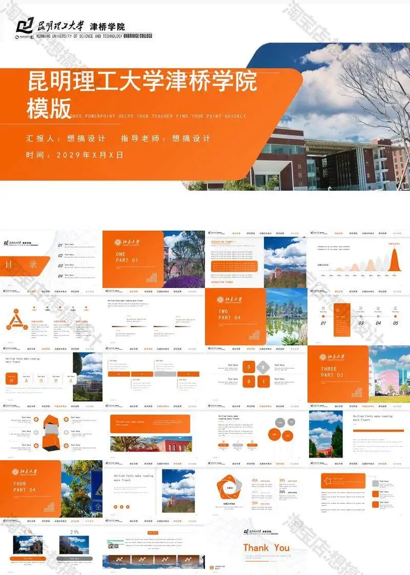 昆明理工大学津桥学院PPT模板复试中期毕业答辩组会汇报