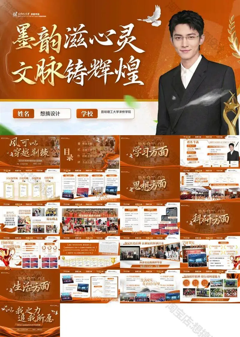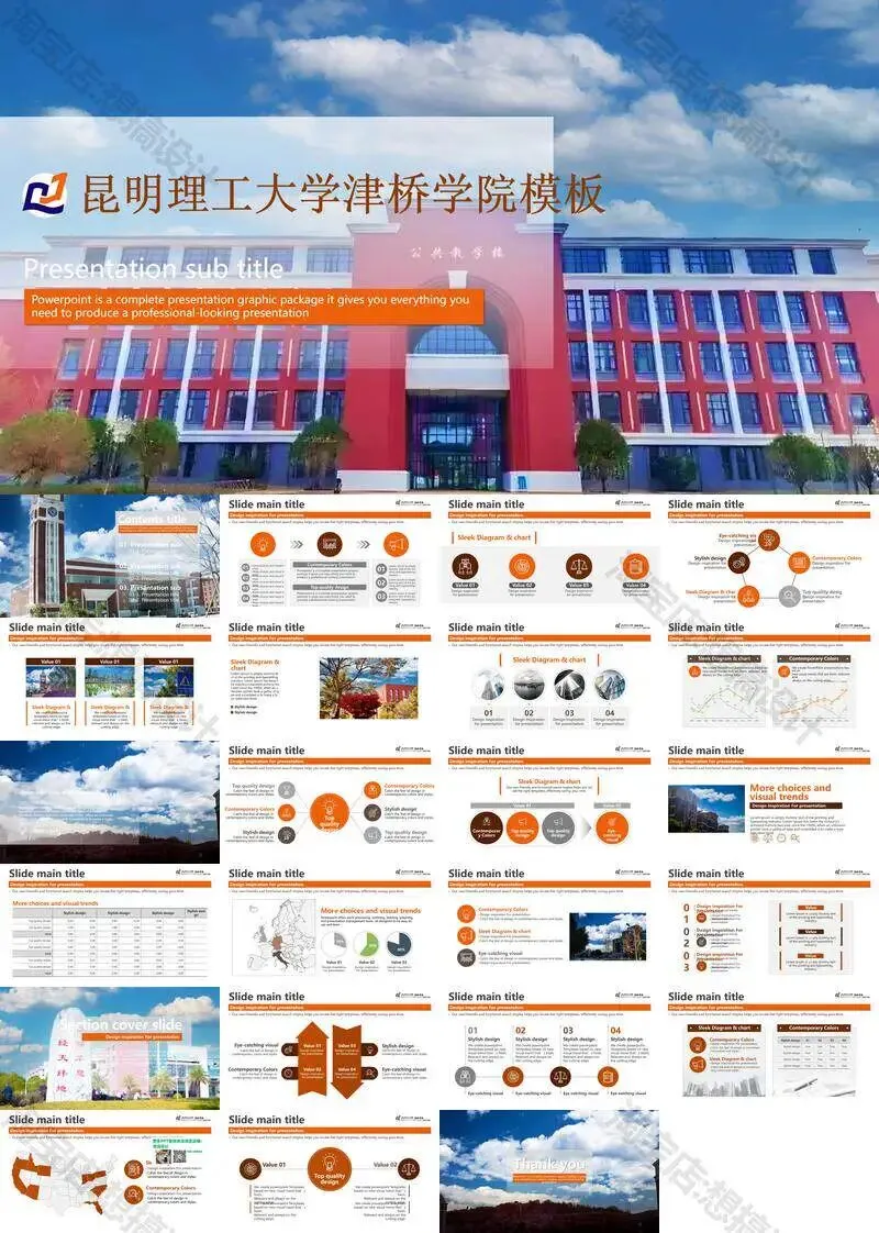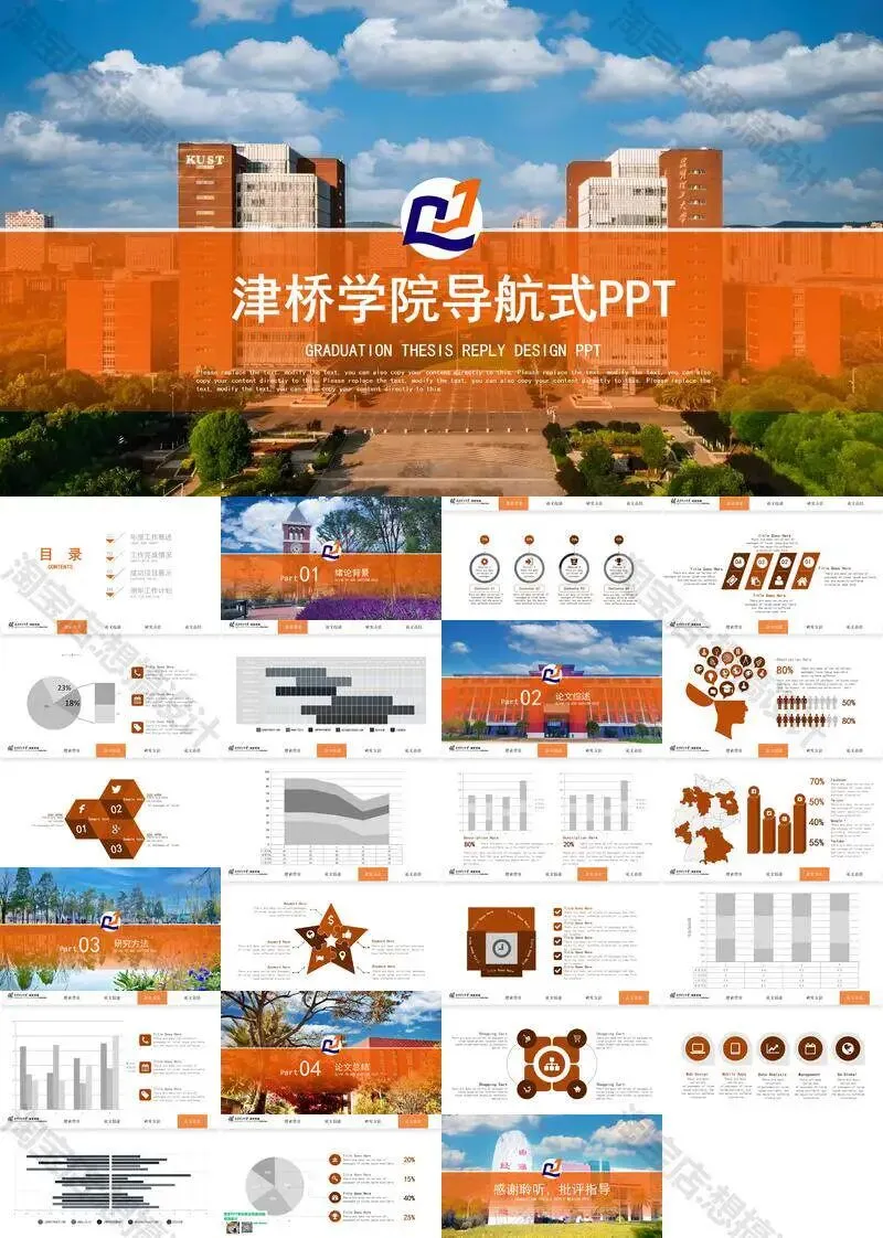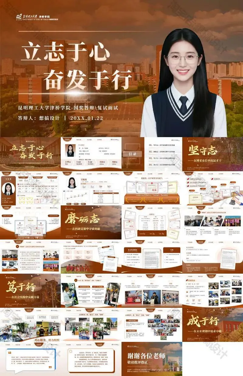 >昆明理工大学津桥学院PPT模板复试中期毕业答辩组会汇报
