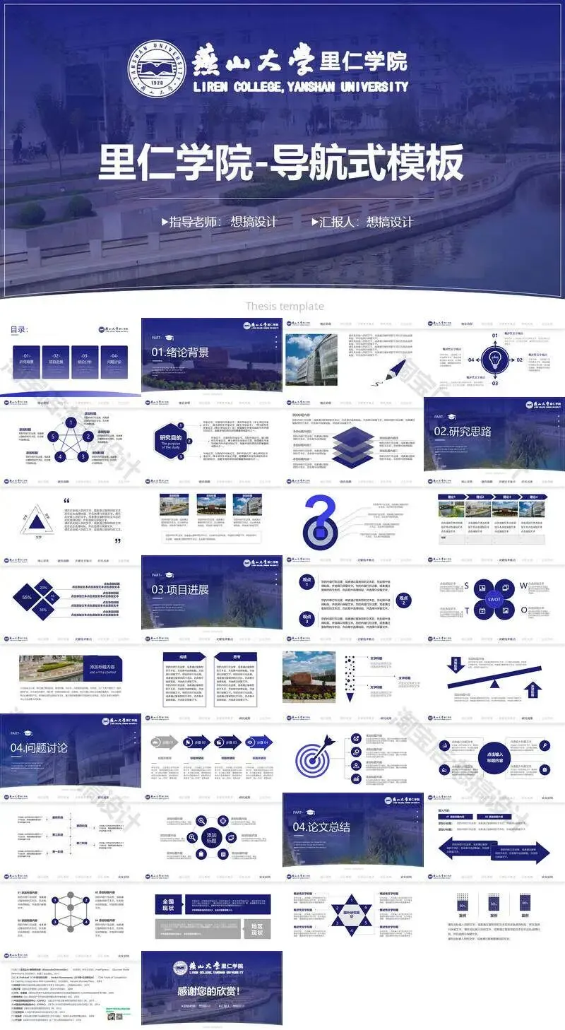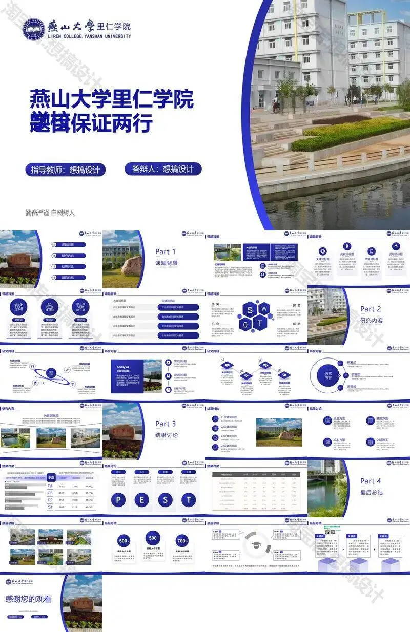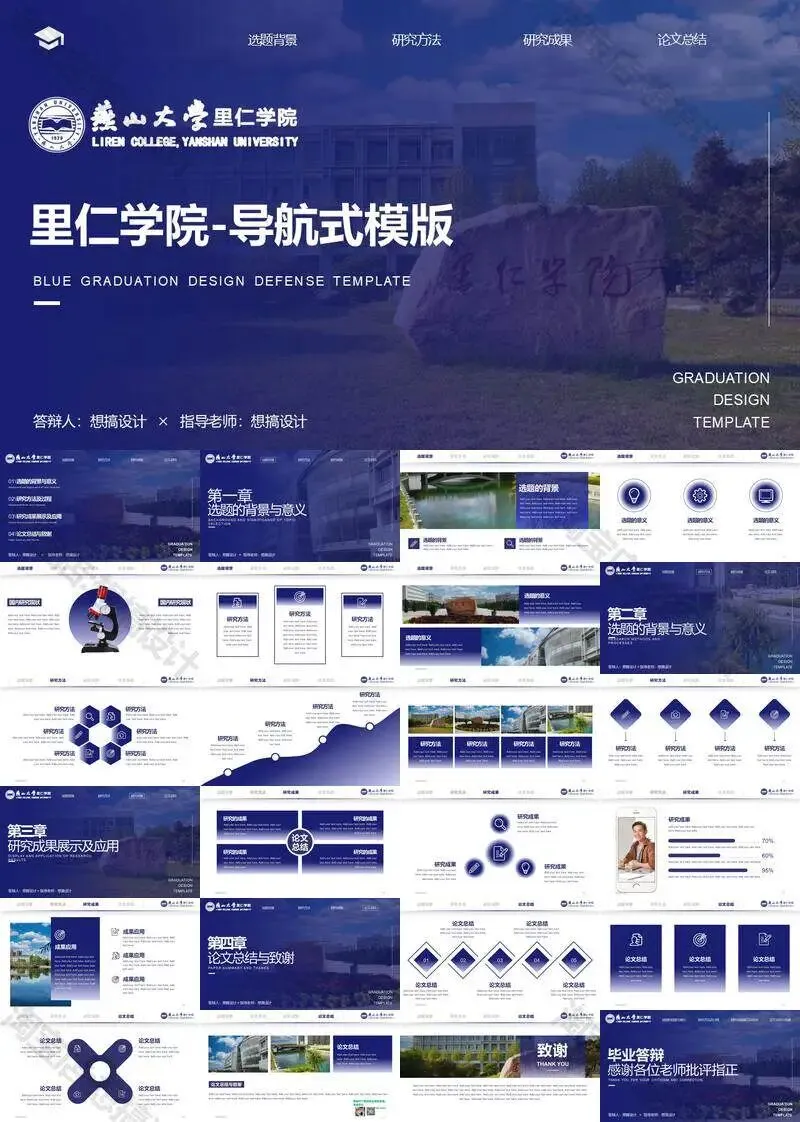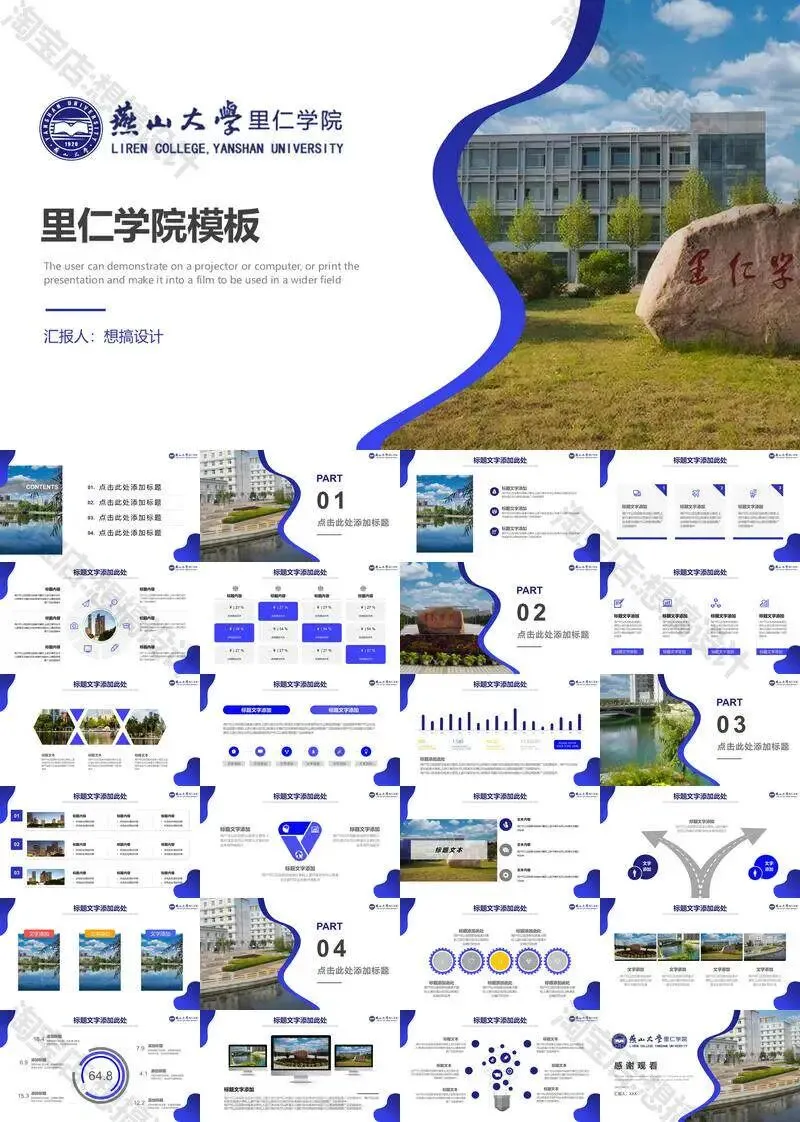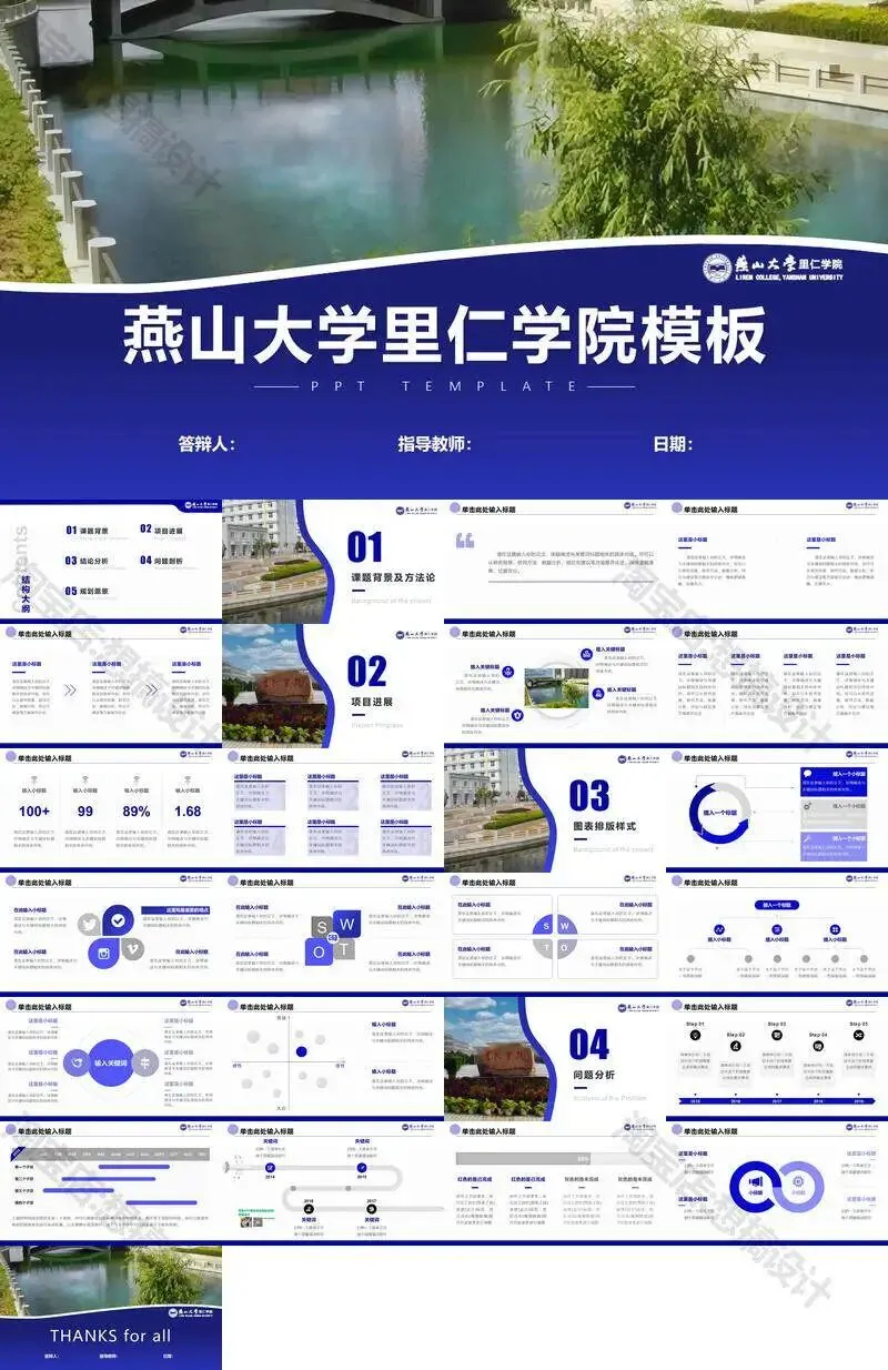 燕山大学里仁学院毕业答辩PPT模板汇报幻灯片课件总结大学生