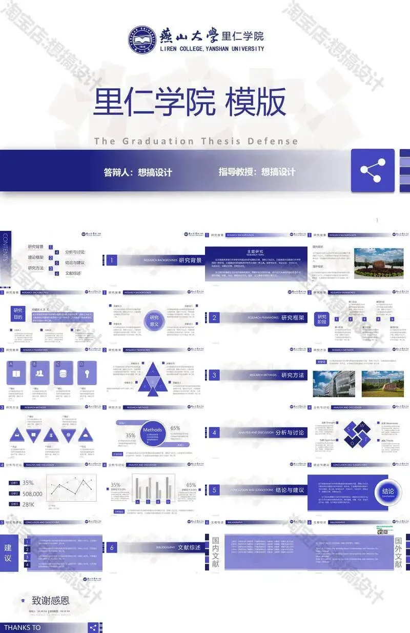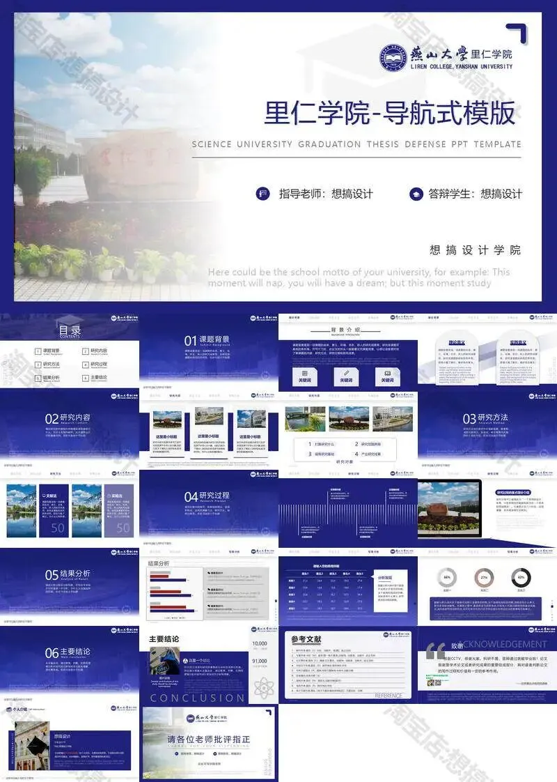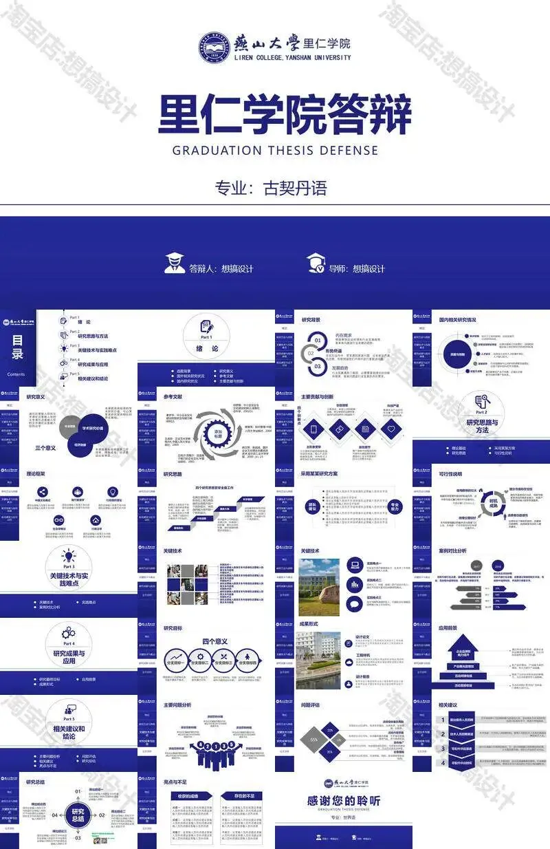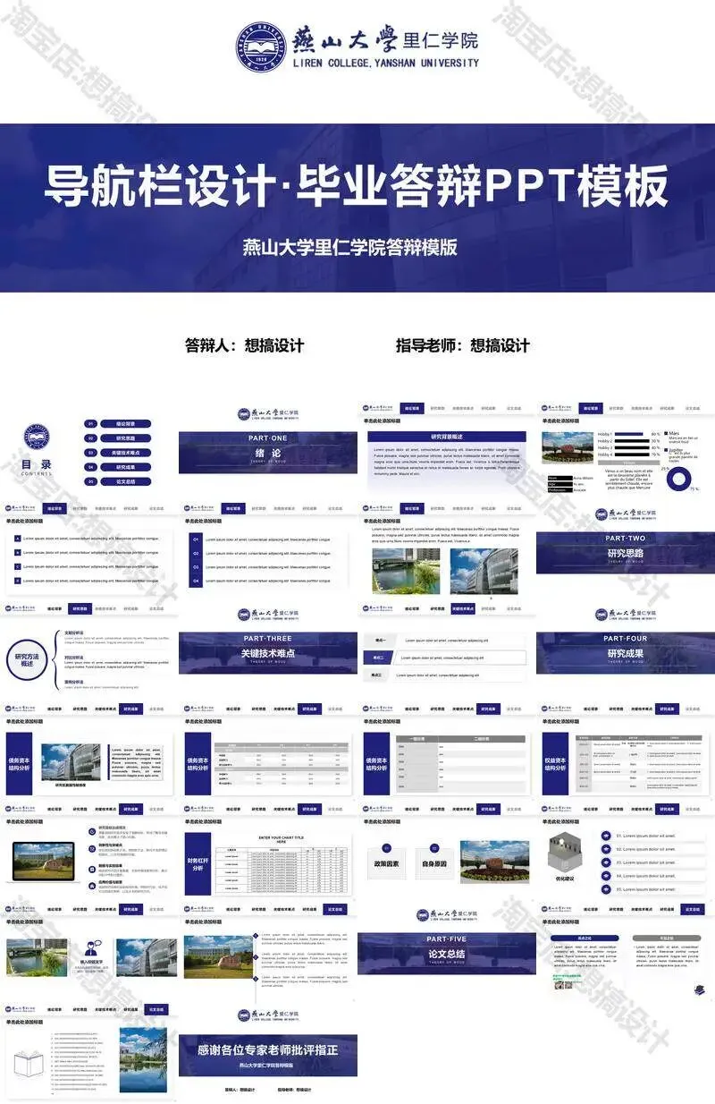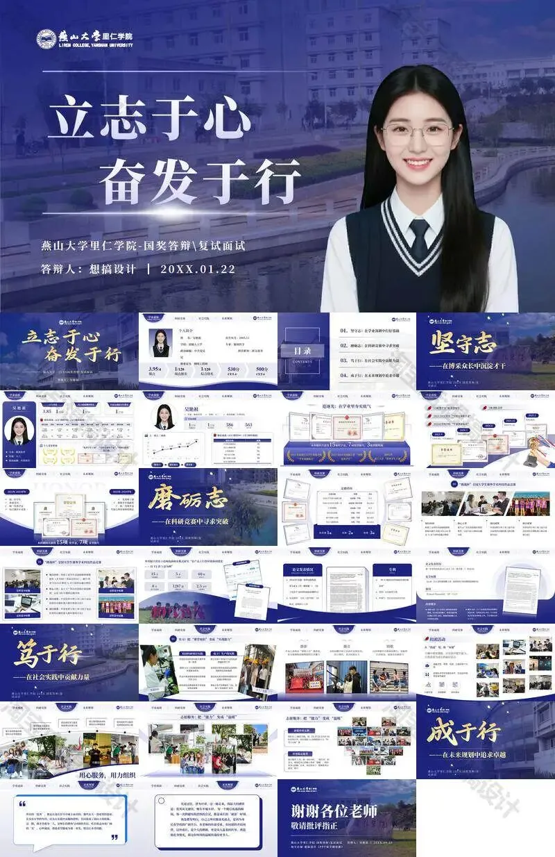 燕山大学里仁学院毕业答辩PPT模板汇报幻灯片课件总结大学生
