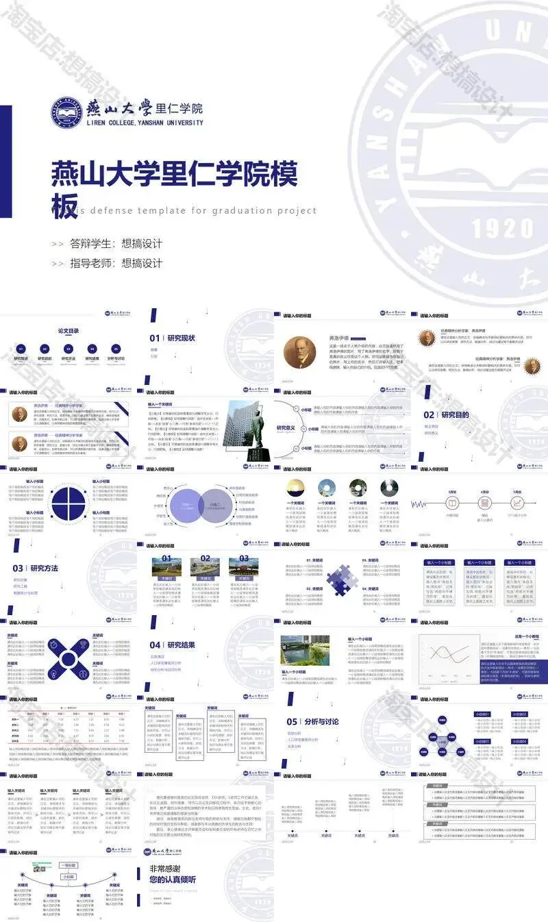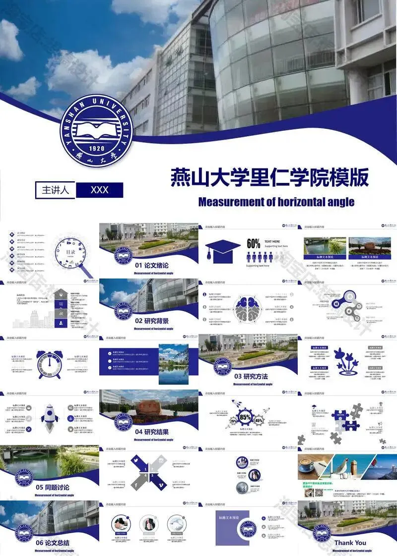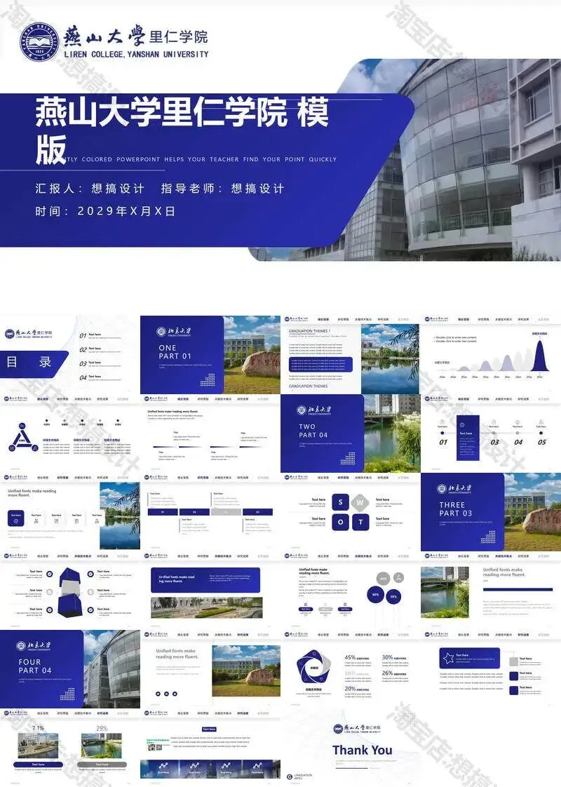 >燕山大学里仁学院毕业答辩PPT模板汇报幻灯片课件总结大学生