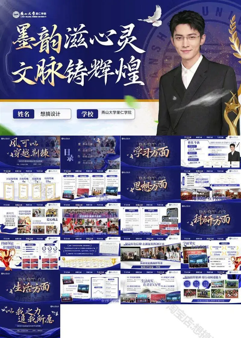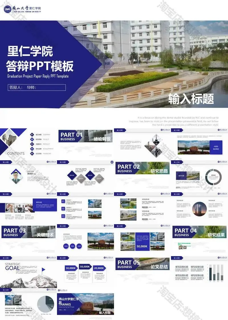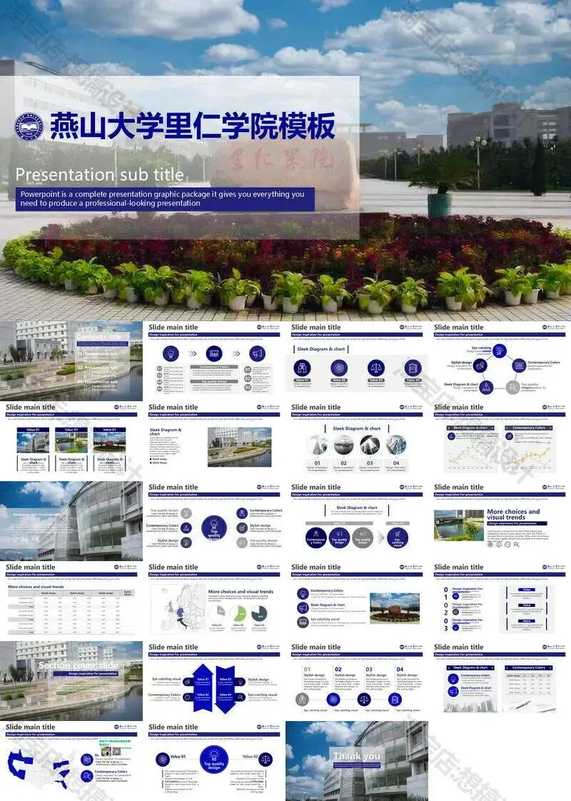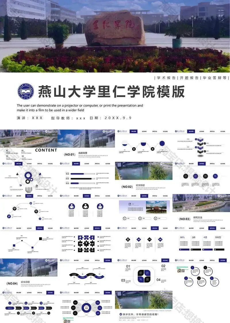 >燕山大学里仁学院毕业答辩PPT模板汇报幻灯片课件总结大学生