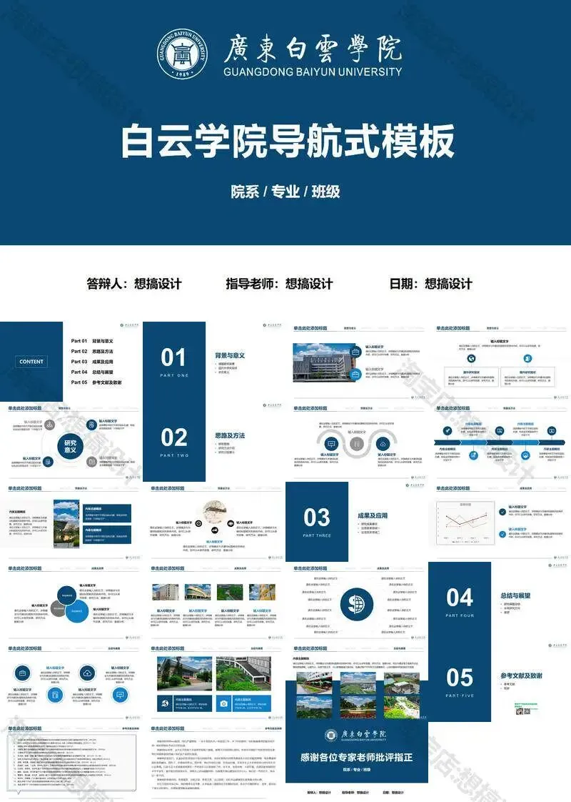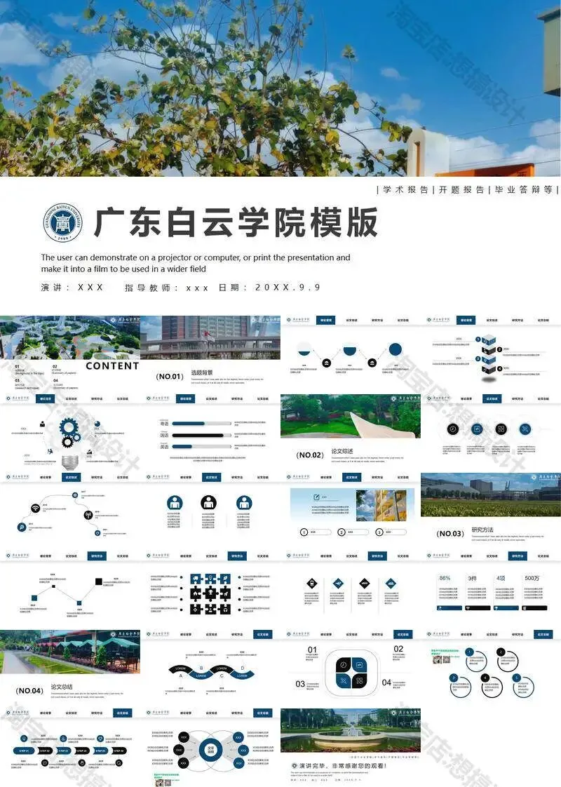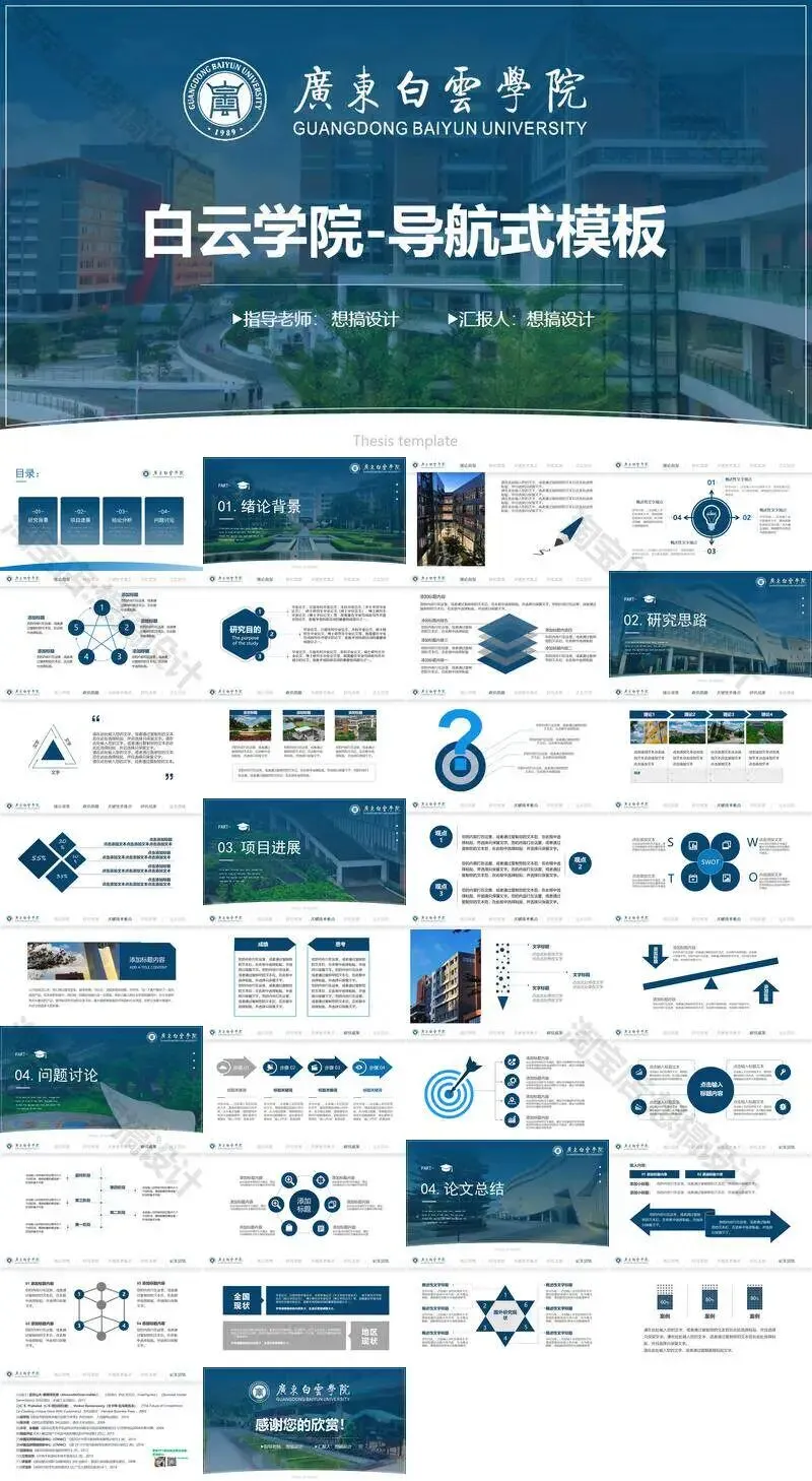 >广东白云学院PPT模板学术组会申博中期毕业答辩总结汇报课题