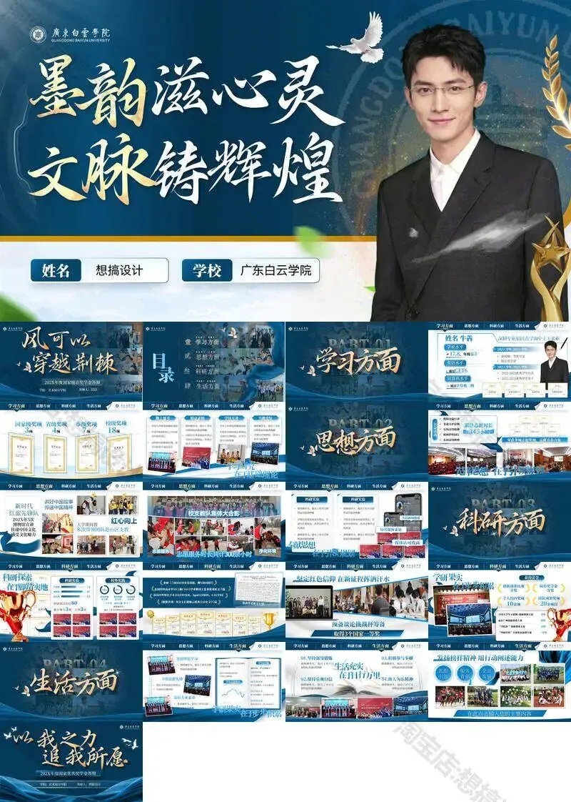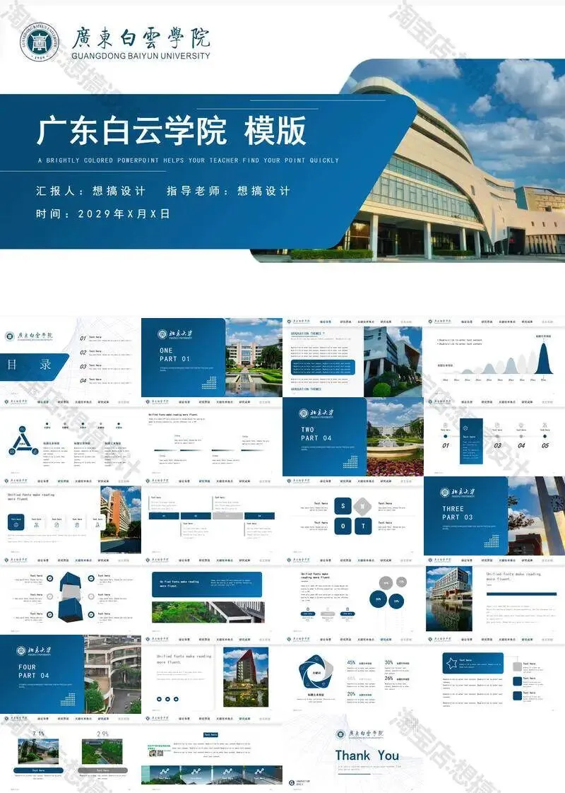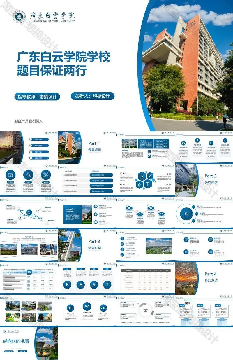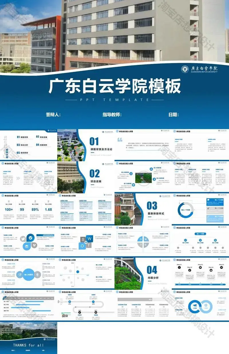 >广东白云学院PPT模板学术组会申博中期毕业答辩总结汇报课题