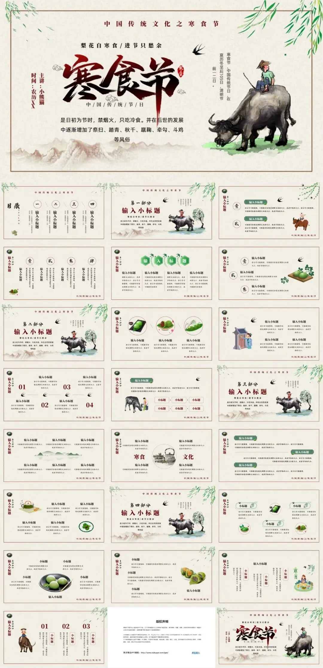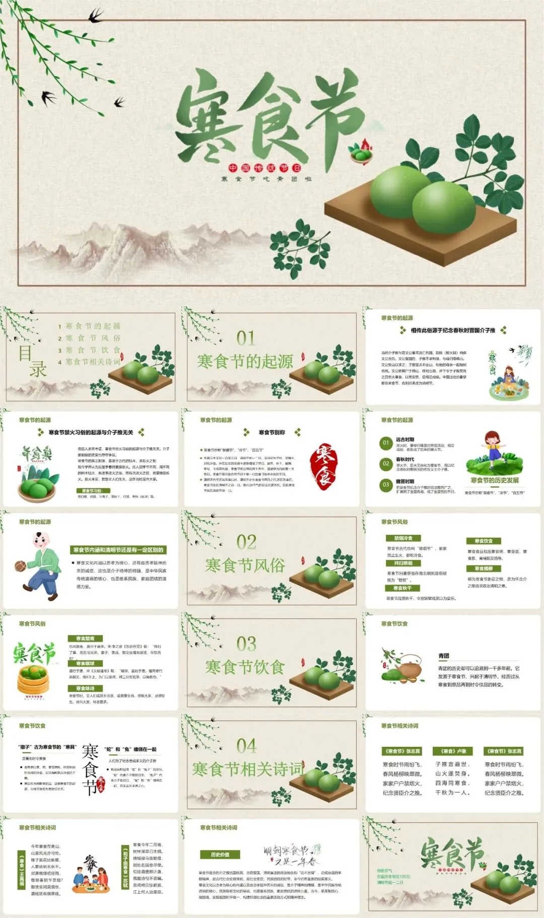 寒食清风拂古意,春和景明忆先贤~ 这份 PPT 模板专为传承寒食文化而来!