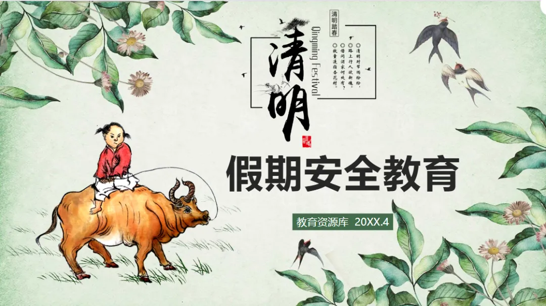 本文分享的是清明节假期安全教育主题班会PPT模板(免费领取)