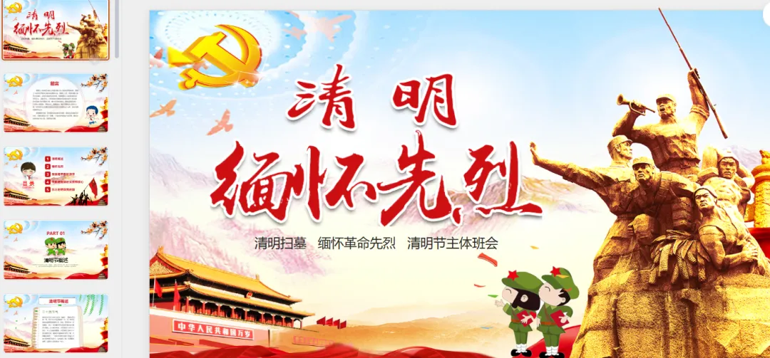 本文分享的是6套清明节祭英烈主题班会PPT模板(免费领取)