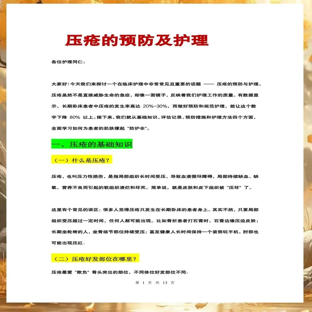 压疮的预防需要多维度综合干预,从体位管理到皮肤护理,从营养支持到健康教育,缺一不可。