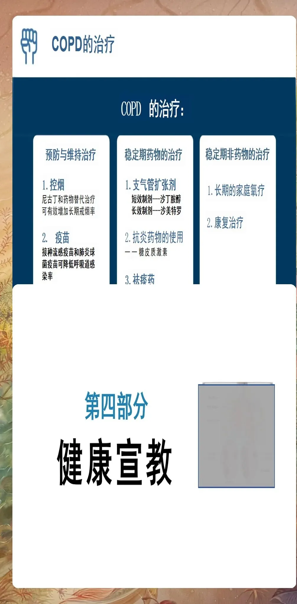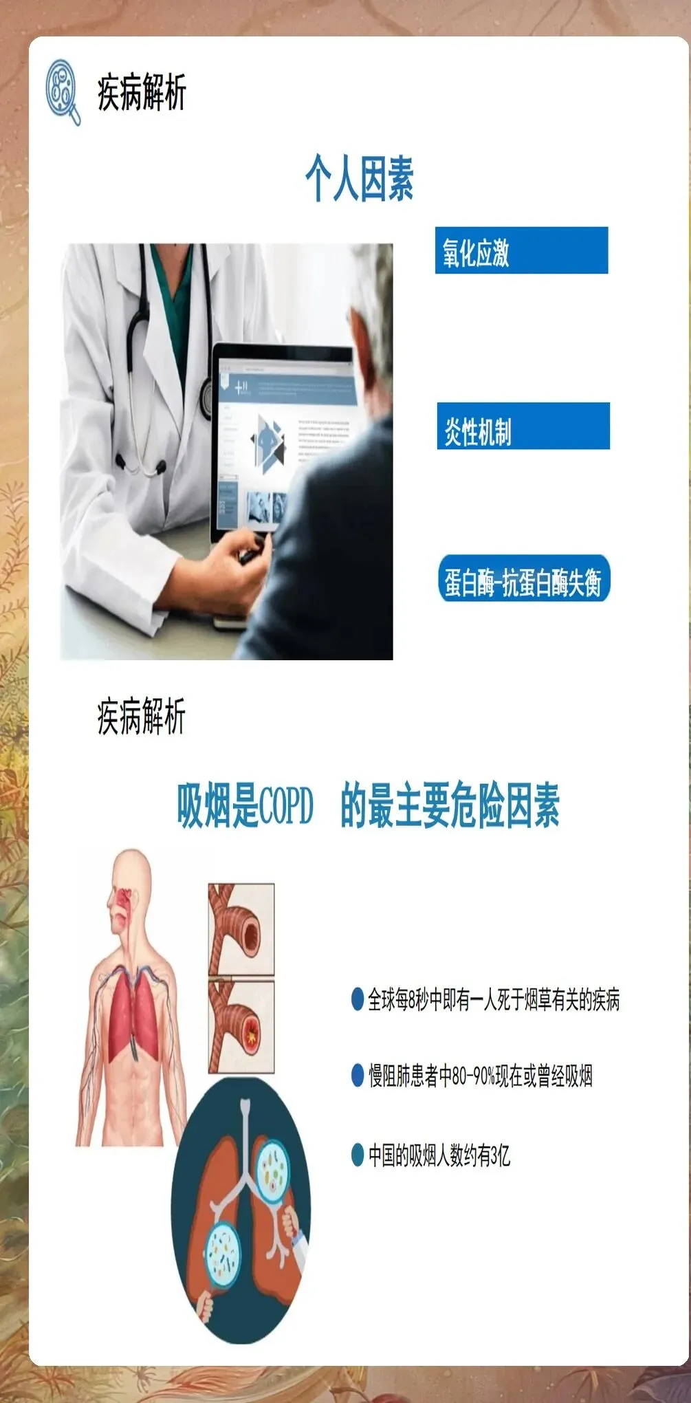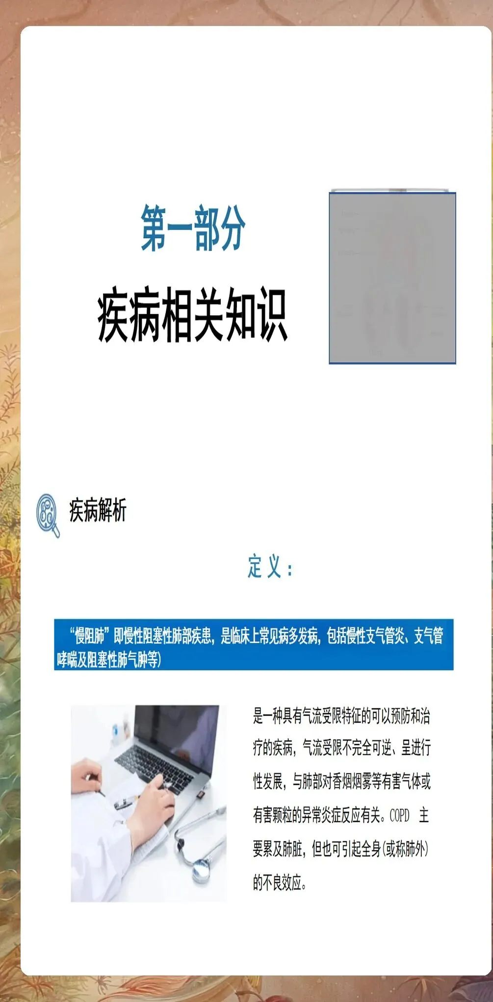 慢性阻塞性肺疾病作为一种常见的、可预防和可治疗的呼吸系统疾病,其特征是持续存在的气流受限。我国慢阻肺患者人数已超过1亿,40岁以上人群患病率达13.7%,疾病负担沉重。本文通过一次典型病例的护理查房,系统阐述慢阻肺患者的规范化管理路径,为临床护理工作提供实践参考。