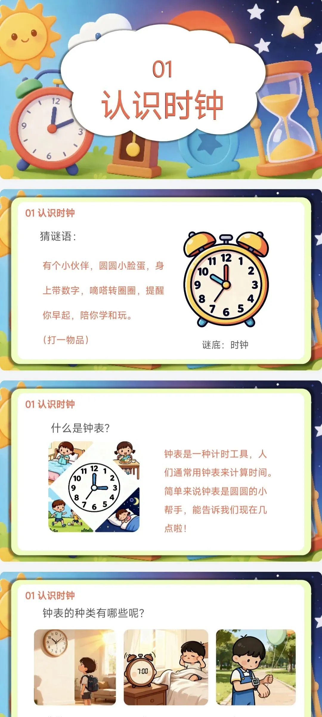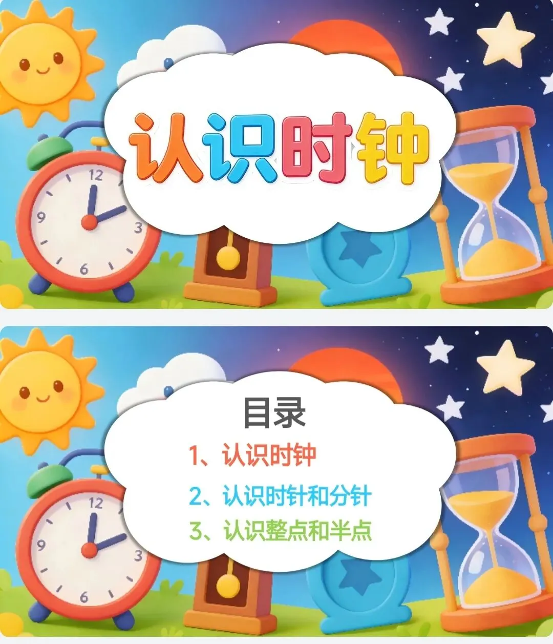 >幼小衔接认识时钟(数学类)2026PPT模板 附带说课稿和教案