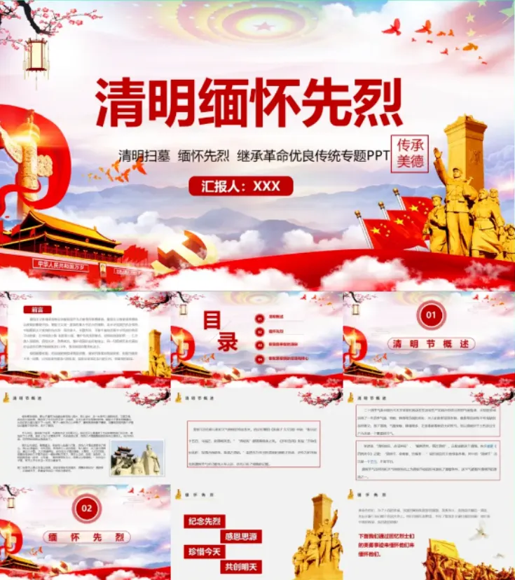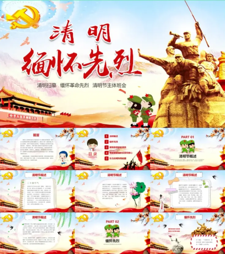 >清明节主题PPT模板可编辑(主题班会、缅怀先烈、活动策划)【免费保存下载】