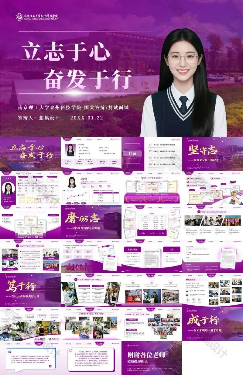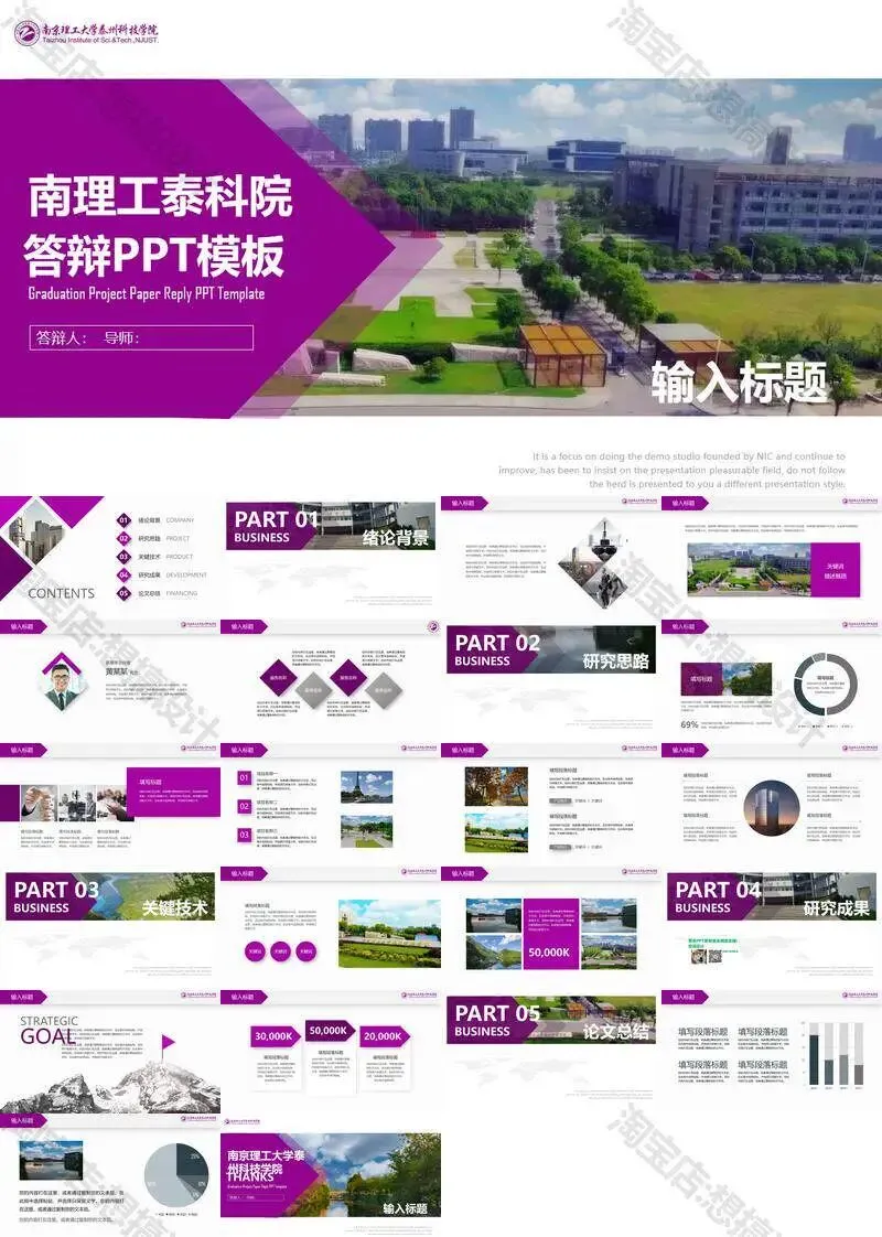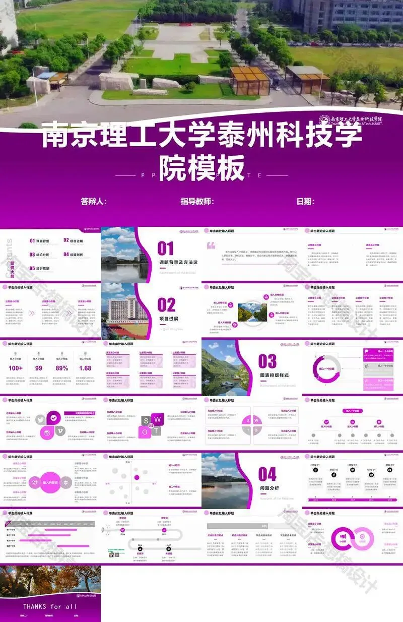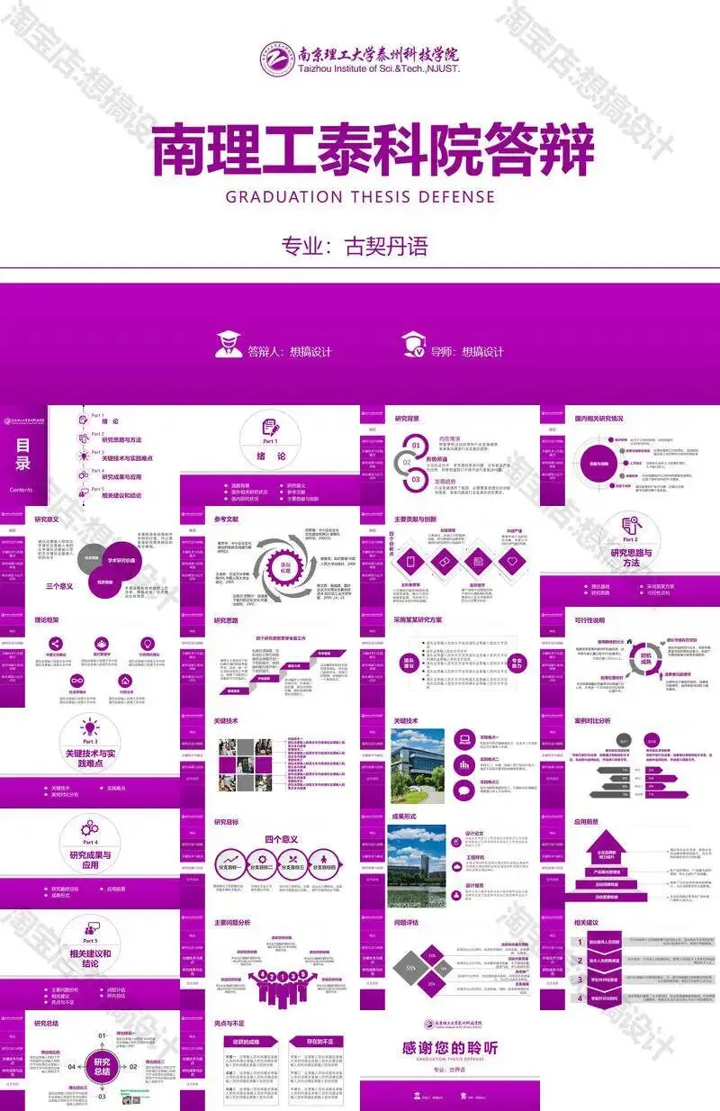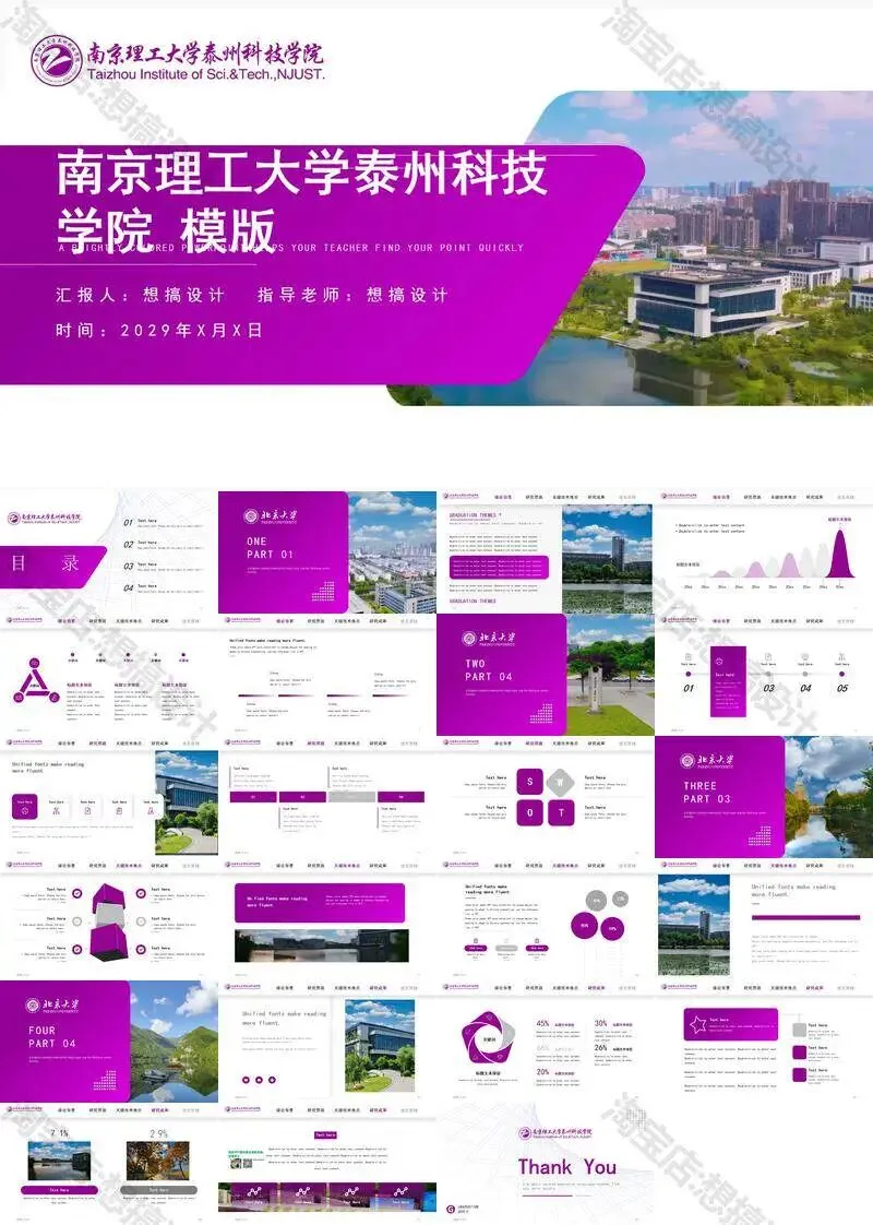 南京理工大学泰州科技学院毕业答辩PPT模板汇报幻灯片课件