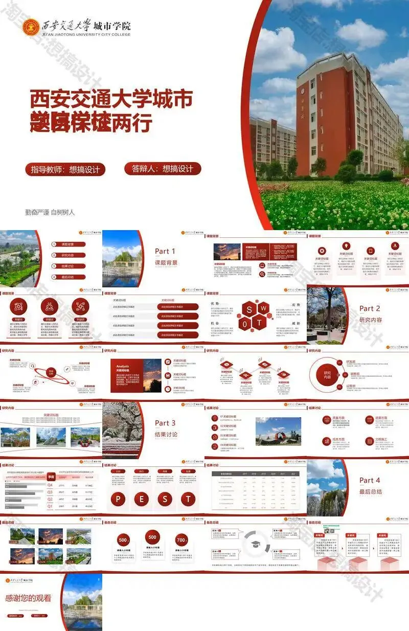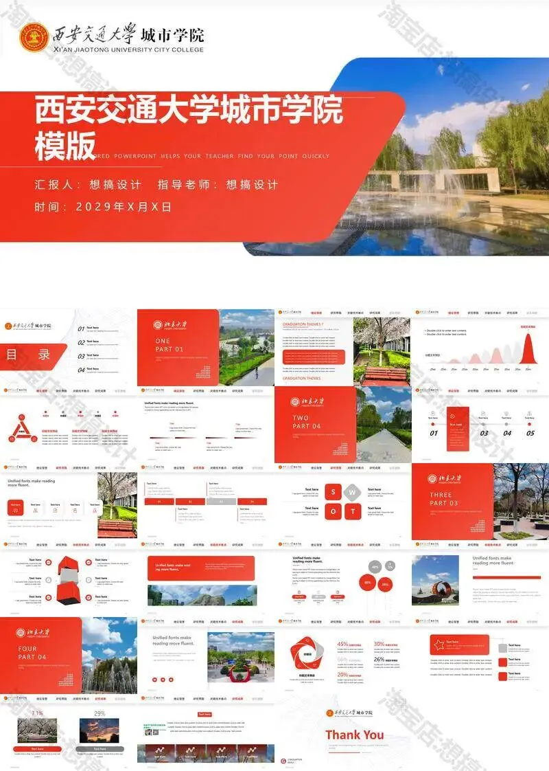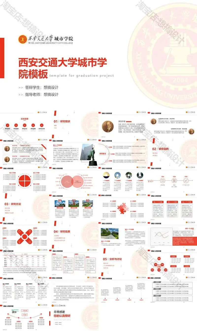 西安交通大学城市学院毕业答辩PPT模板汇报幻灯片课件