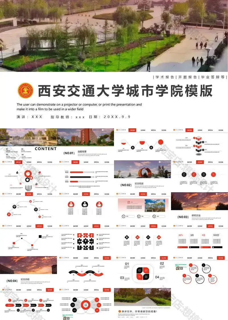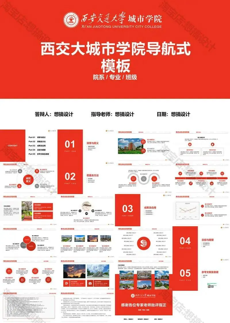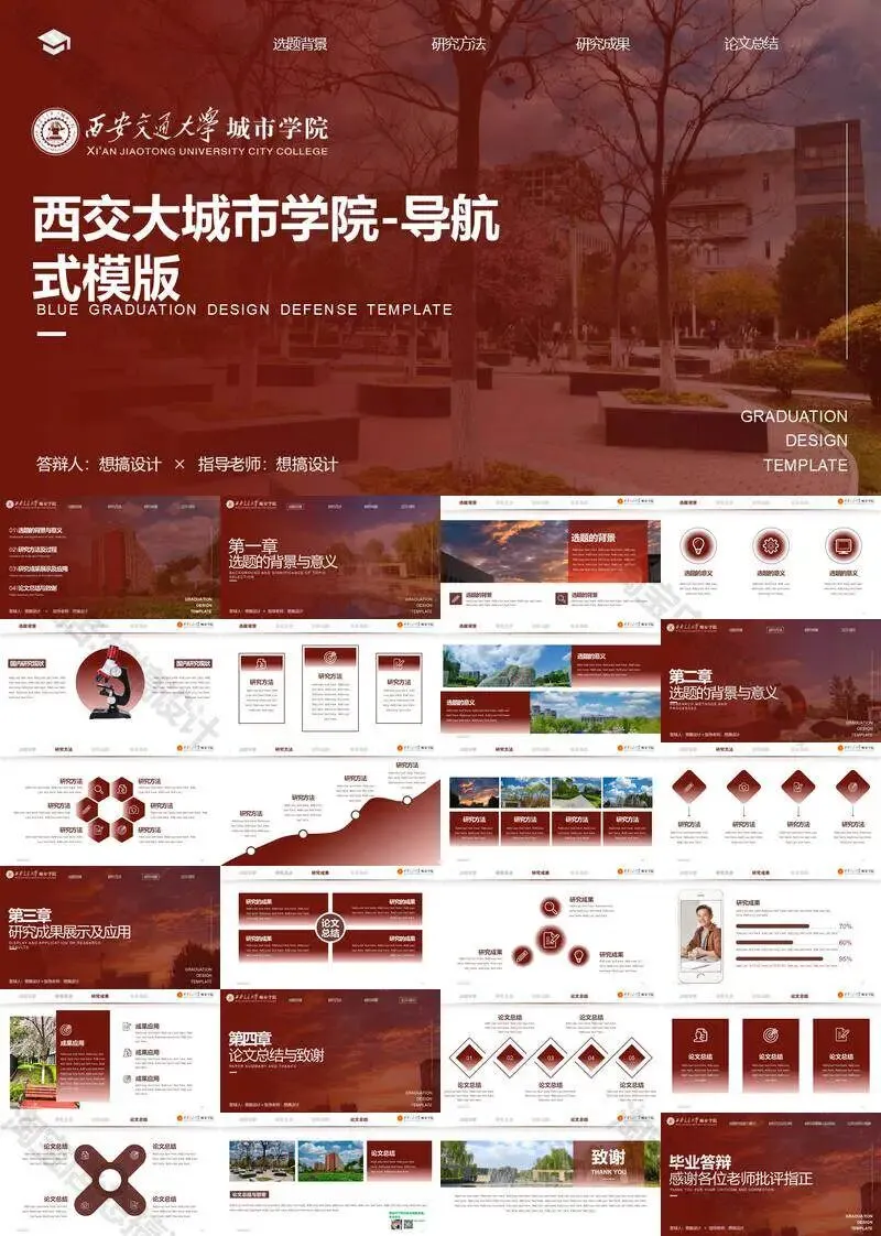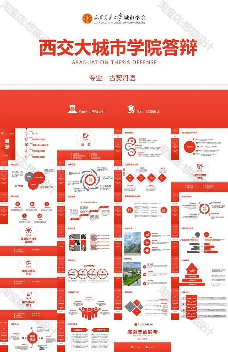 西安交通大学城市学院毕业答辩PPT模板汇报幻灯片课件