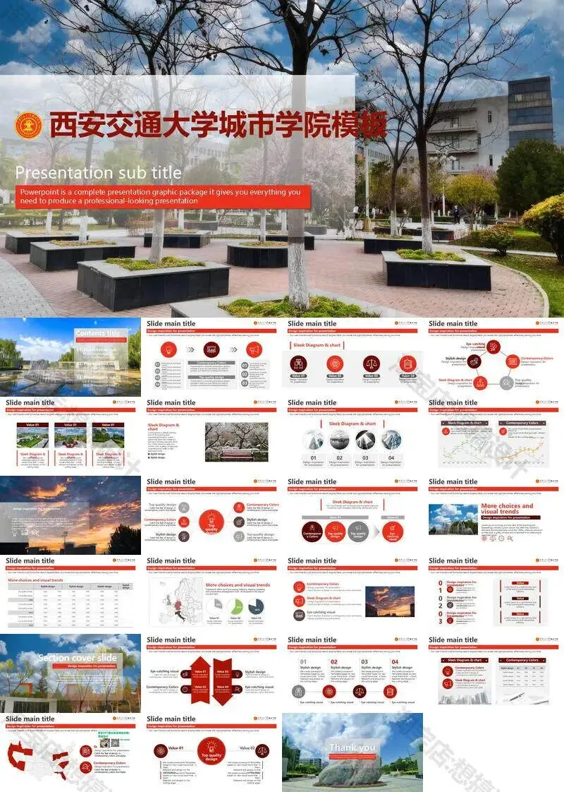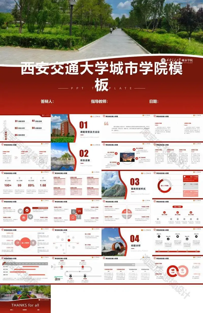 >西安交通大学城市学院毕业答辩PPT模板汇报幻灯片课件