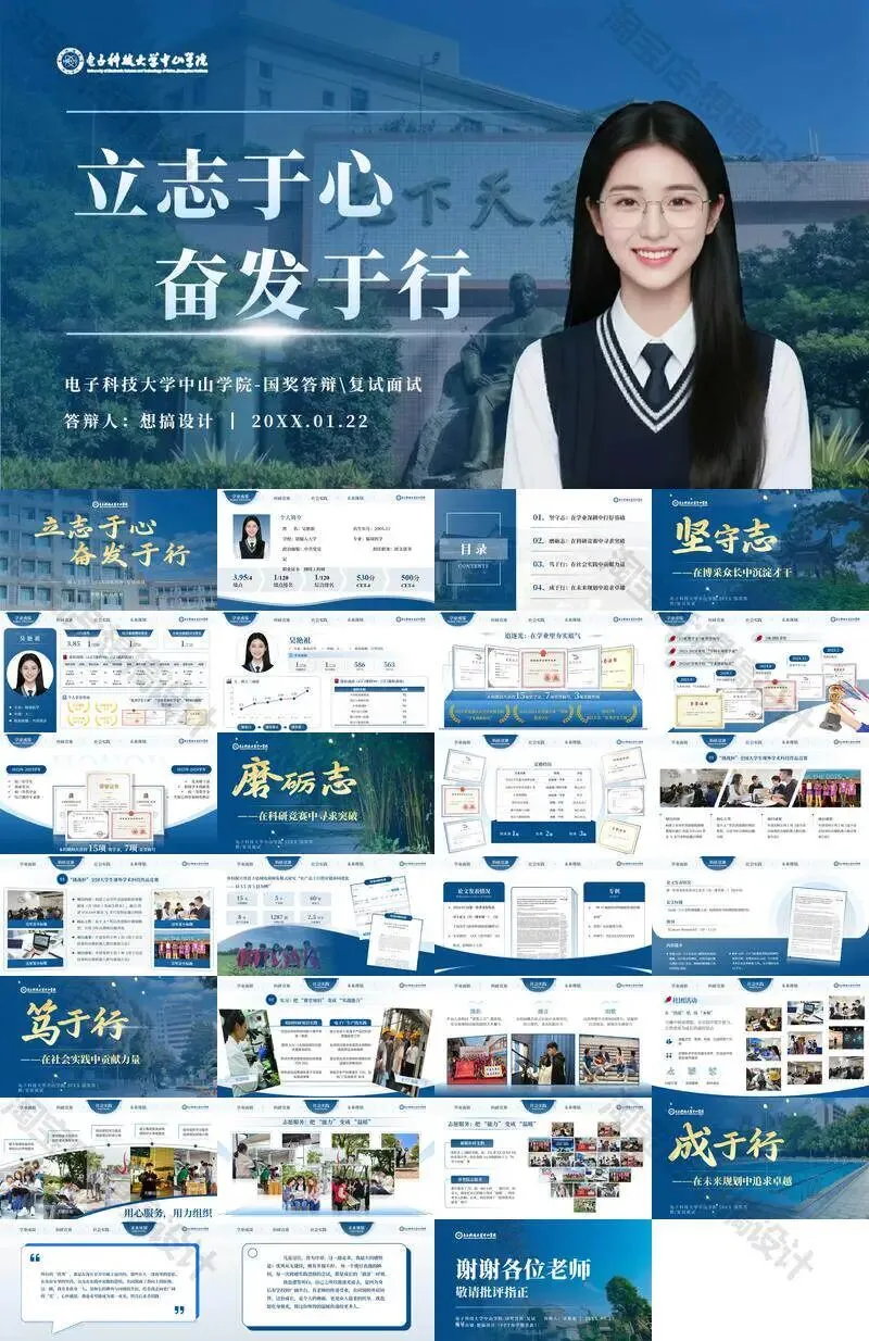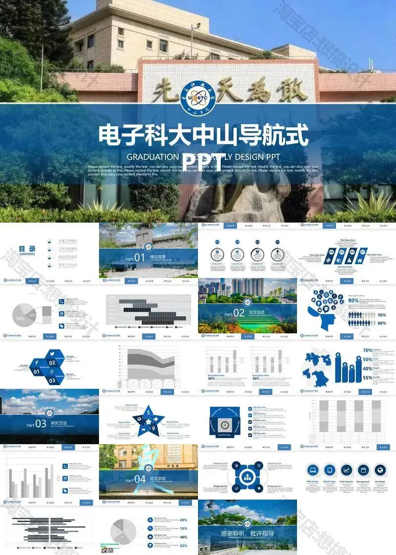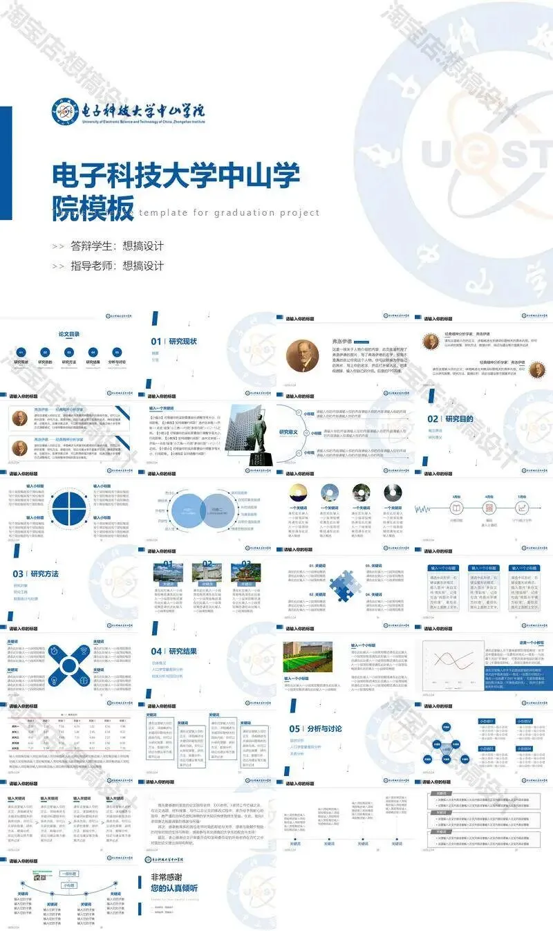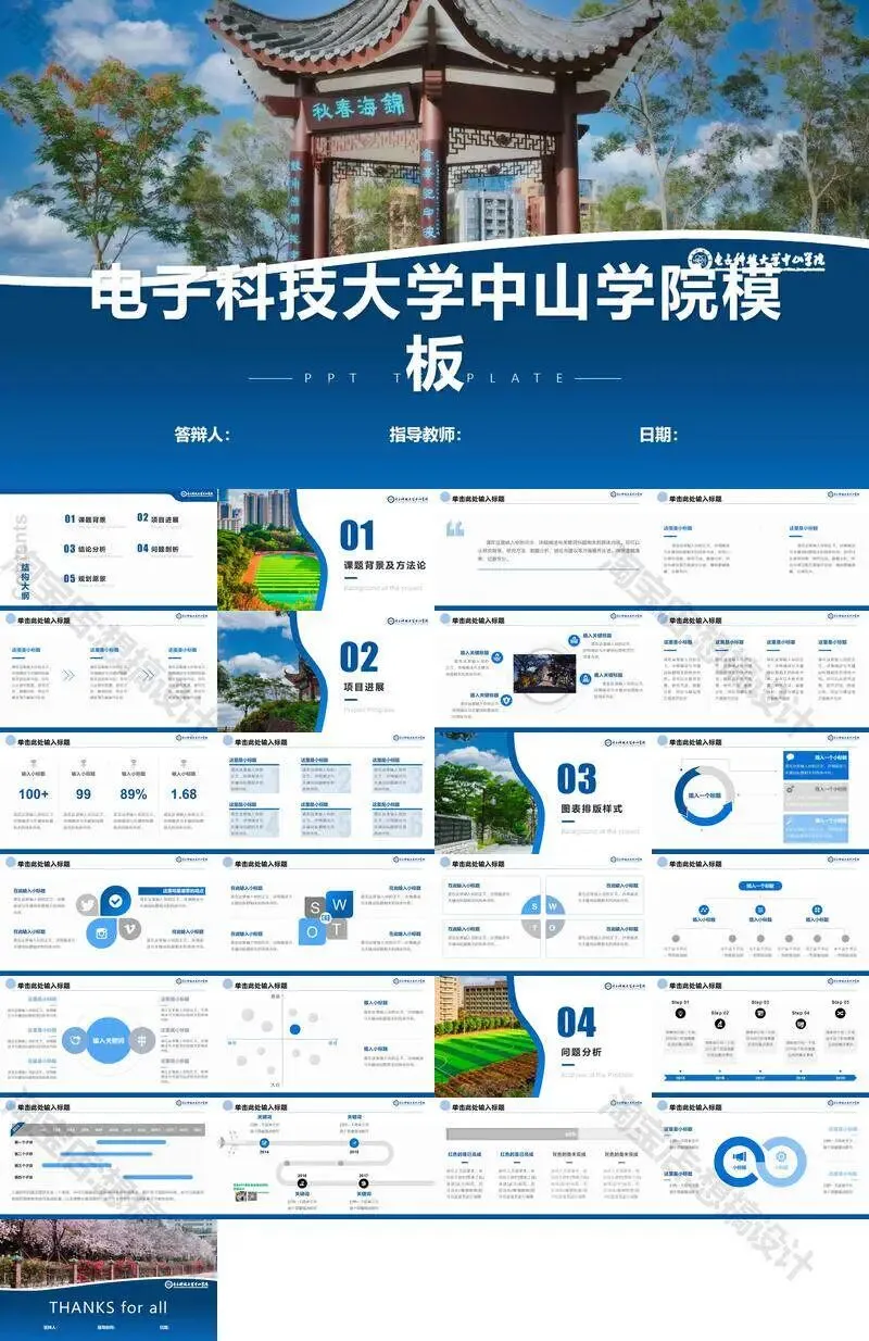>电子科技大学中山学院毕业答辩PPT模板汇报幻灯片课件总结