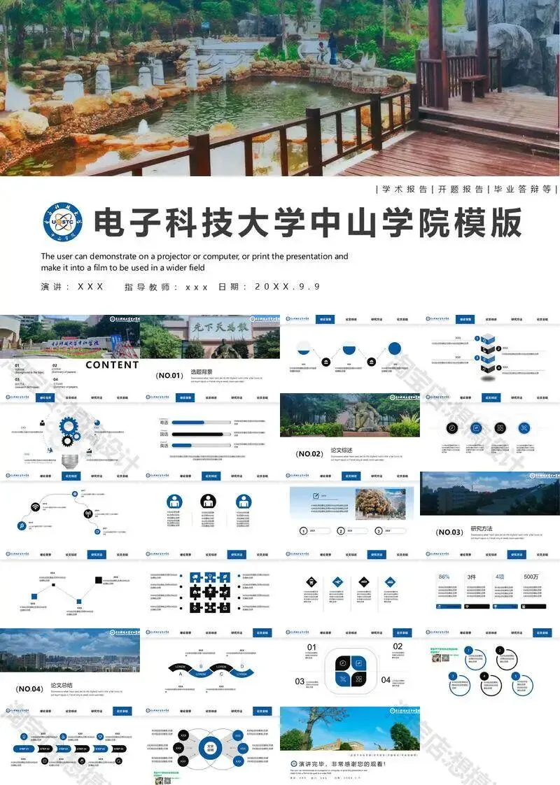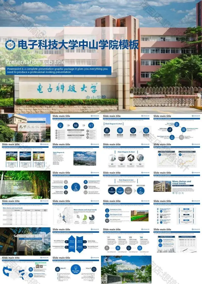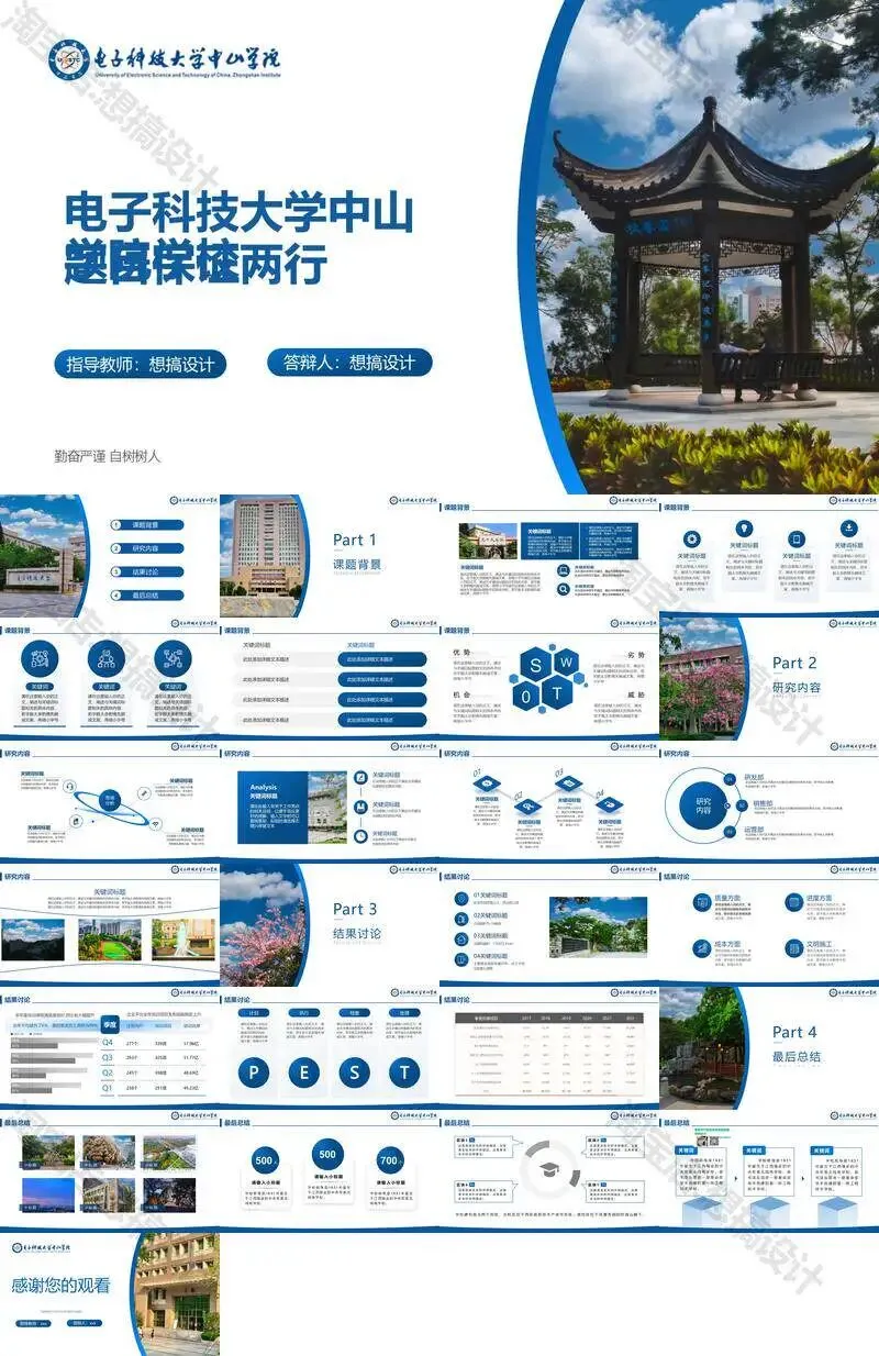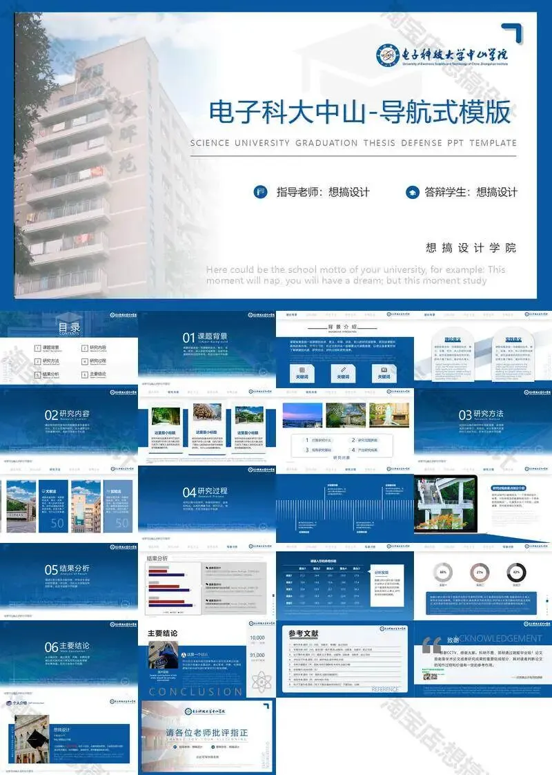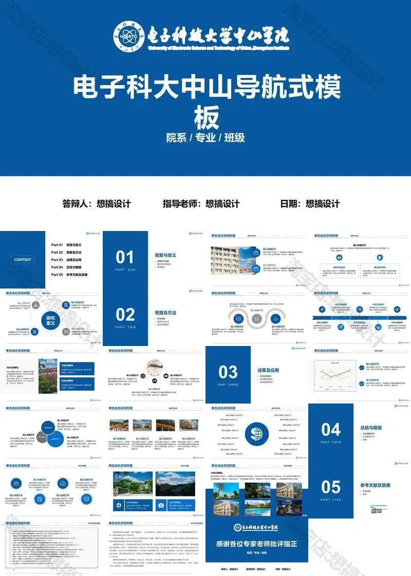 >电子科技大学中山学院毕业答辩PPT模板汇报幻灯片课件总结