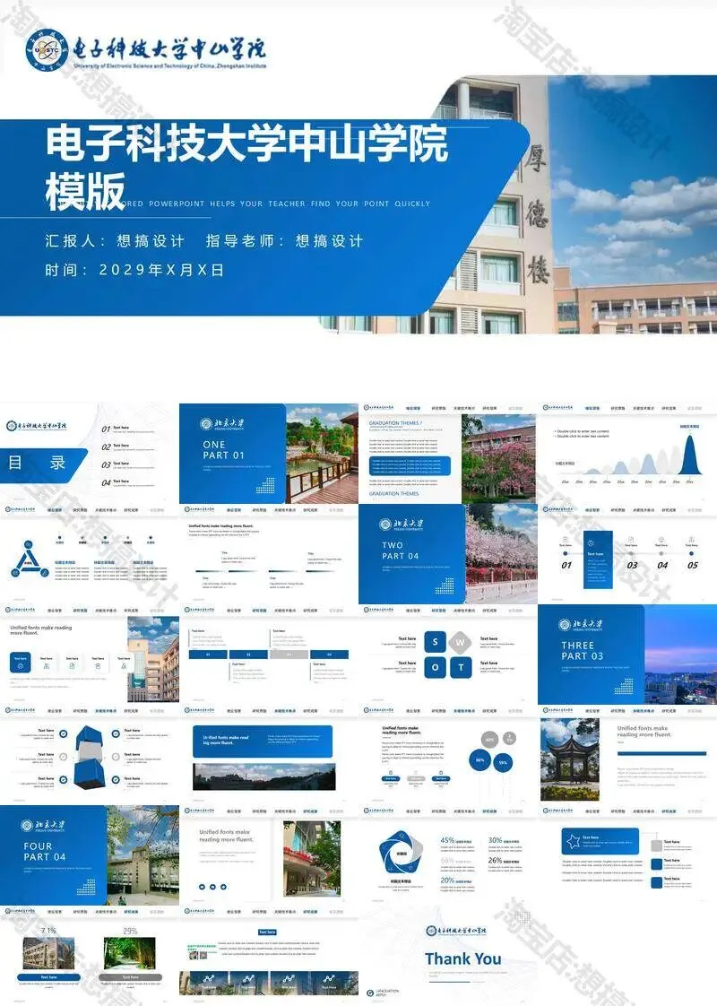 电子科技大学中山学院毕业答辩PPT模板汇报幻灯片课件总结