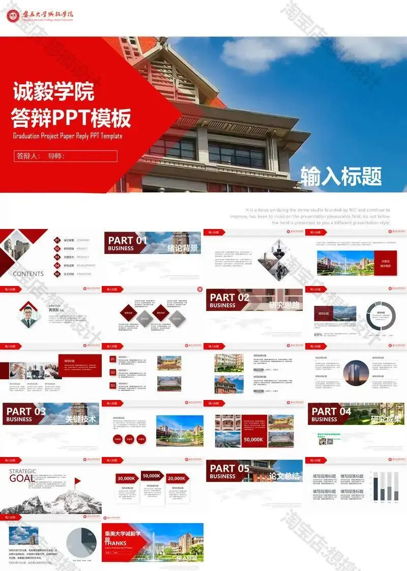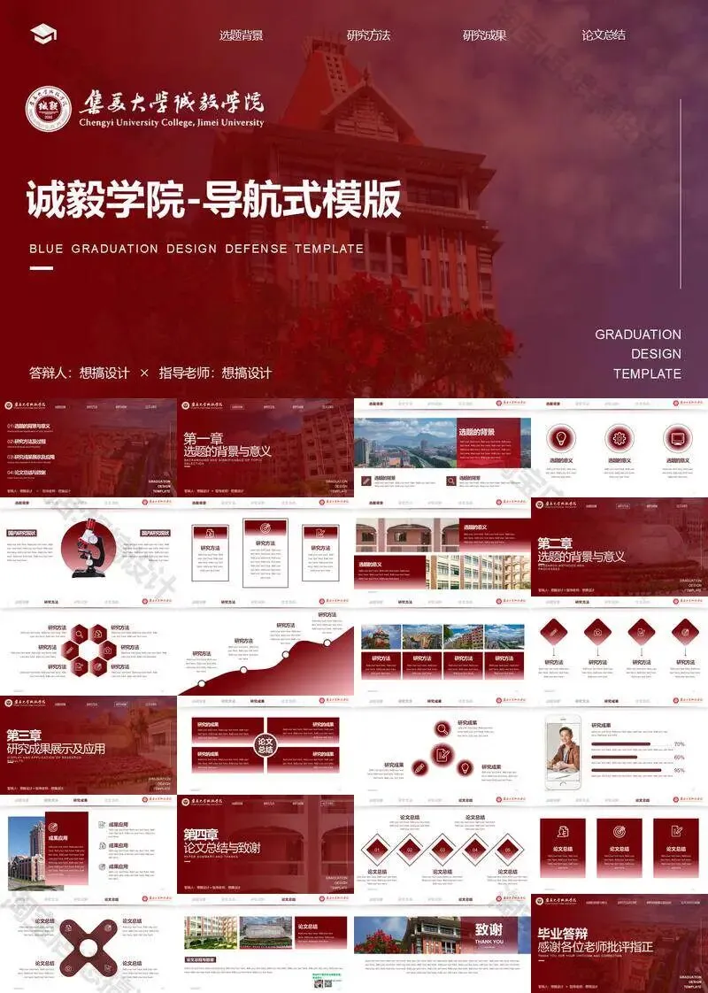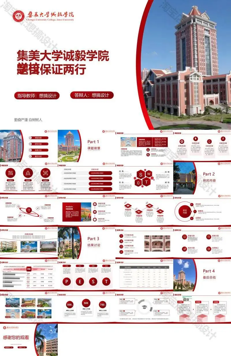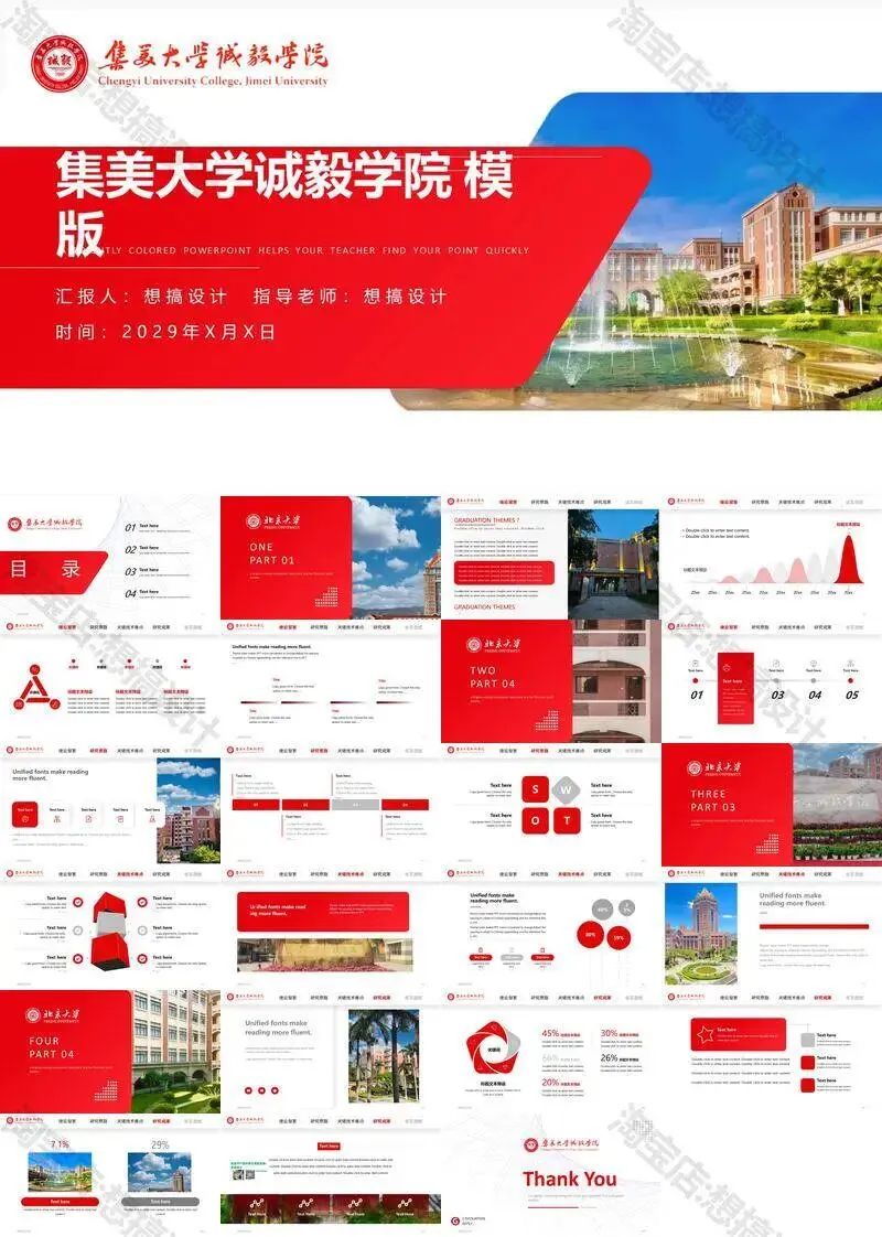 >集美大学诚毅学院毕业答辩PPT模板汇报幻灯片课件总结大学生