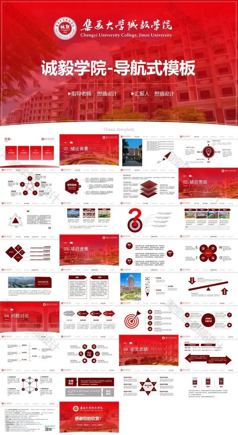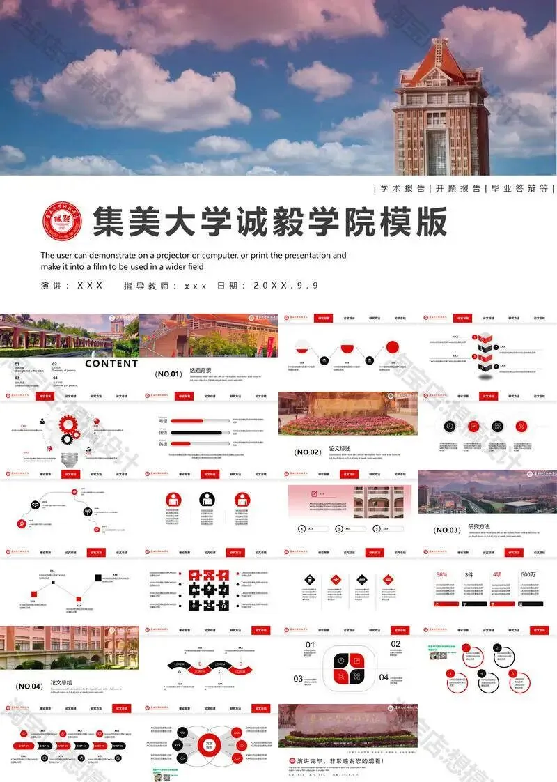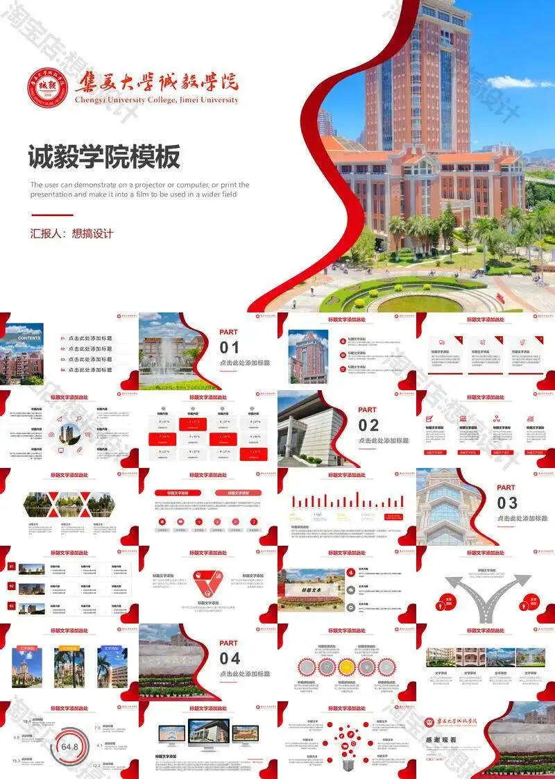 >集美大学诚毅学院毕业答辩PPT模板汇报幻灯片课件总结大学生