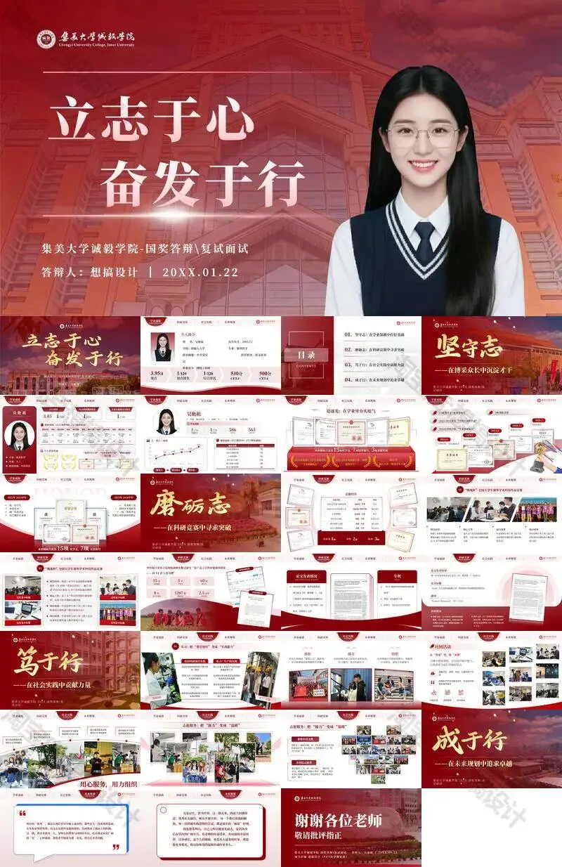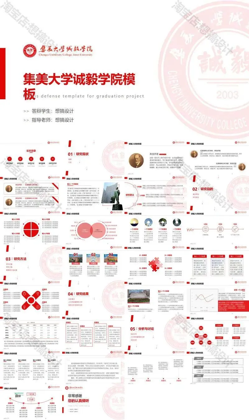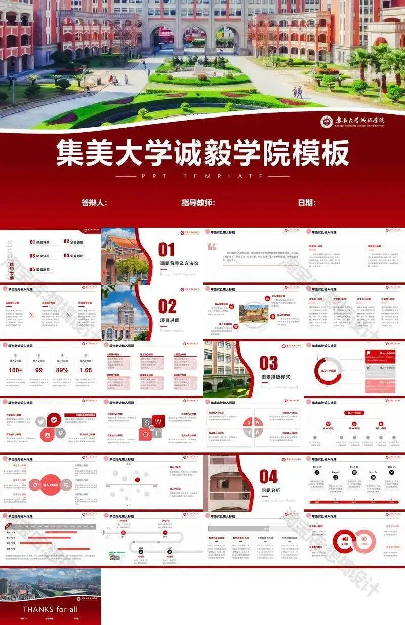 集美大学诚毅学院毕业答辩PPT模板汇报幻灯片课件总结大学生
