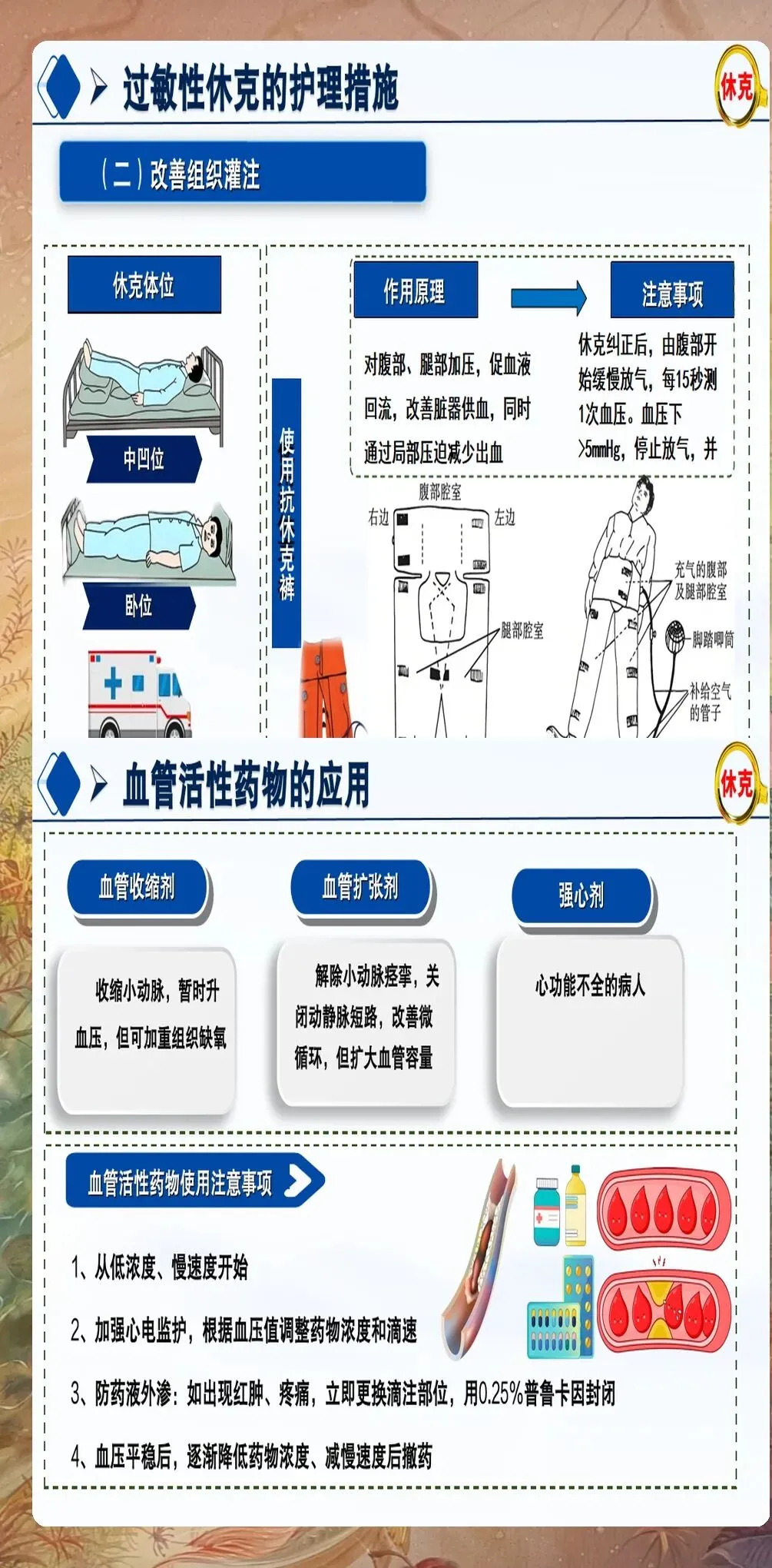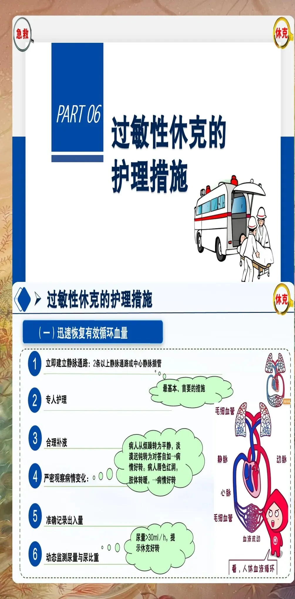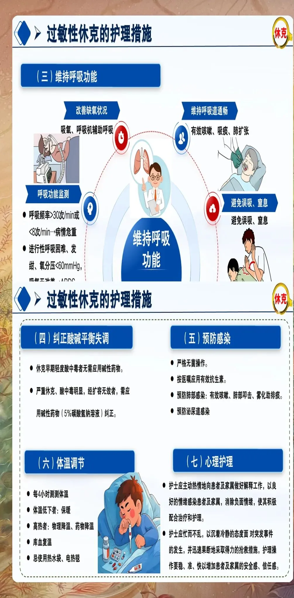 过敏性休克的护理不仅包括急救阶段的护理,还包括后续的病情观察、健康教育和预防复发指导。