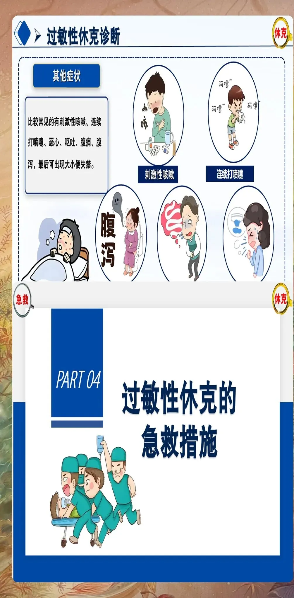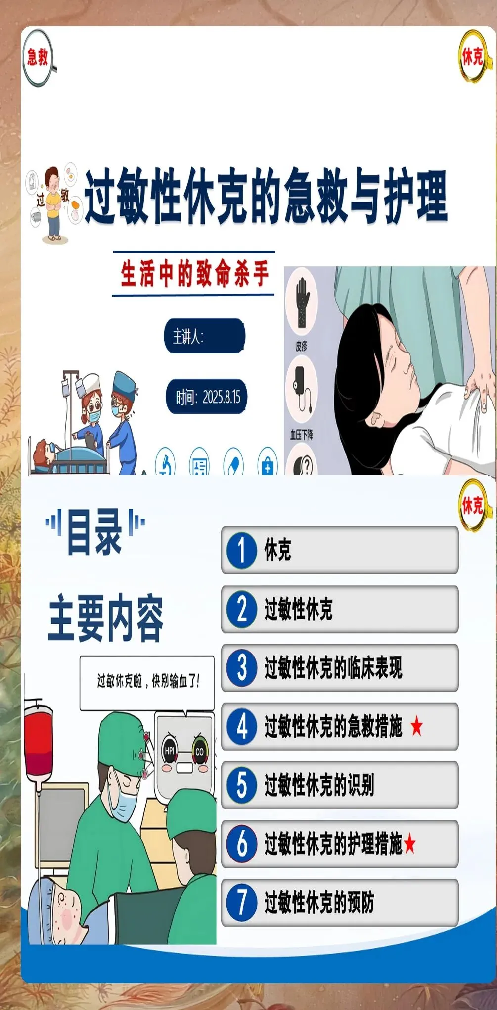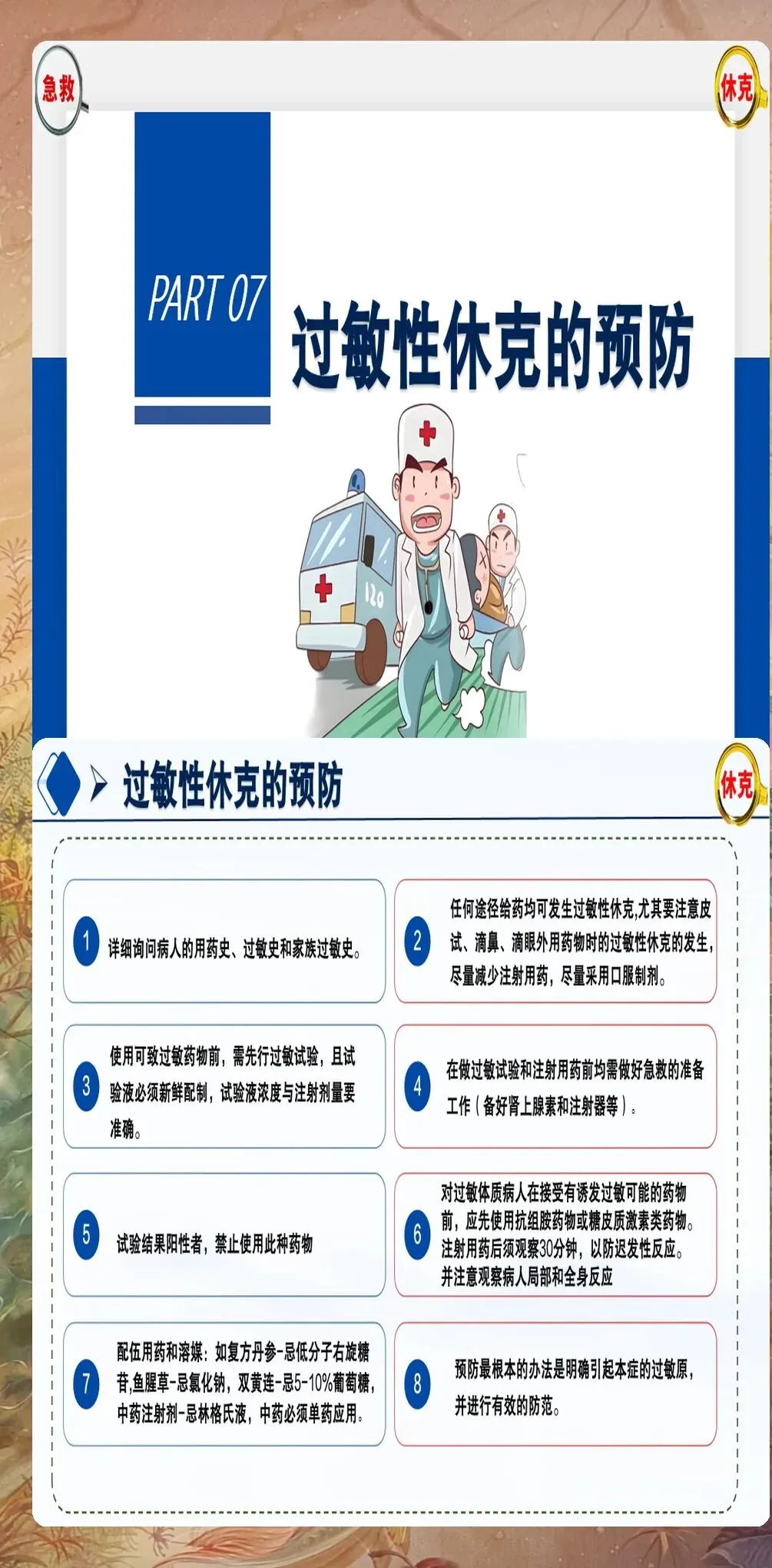 过敏性休克的护理不仅包括急救阶段的护理,还包括后续的病情观察、健康教育和预防复发指导。