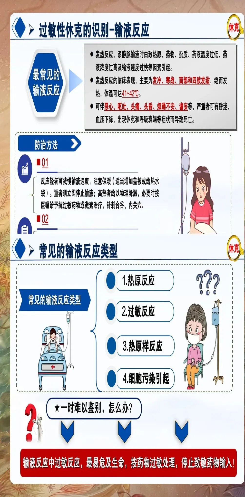 预警信号识别:在过敏反应早期,患者可能出现轻微症状,如皮肤潮红、瘙痒、轻微呼吸困难等。这些预警信号可能是严重过敏反应的前兆,应立即评估患者情况,准备抢救物资。建议建立过敏反应预警评分系统,指导临床决策。