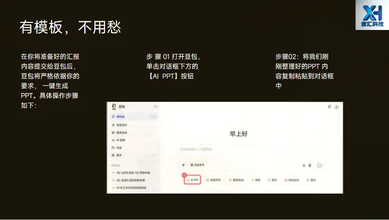 现在,豆包 AI PPT彻底解放双手,只需要两步:核心逻辑 + 7 步操作,轻松搞定汇报!二、第一步:先提炼核心,AI 才好发力