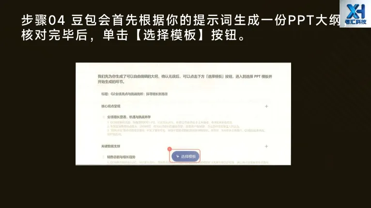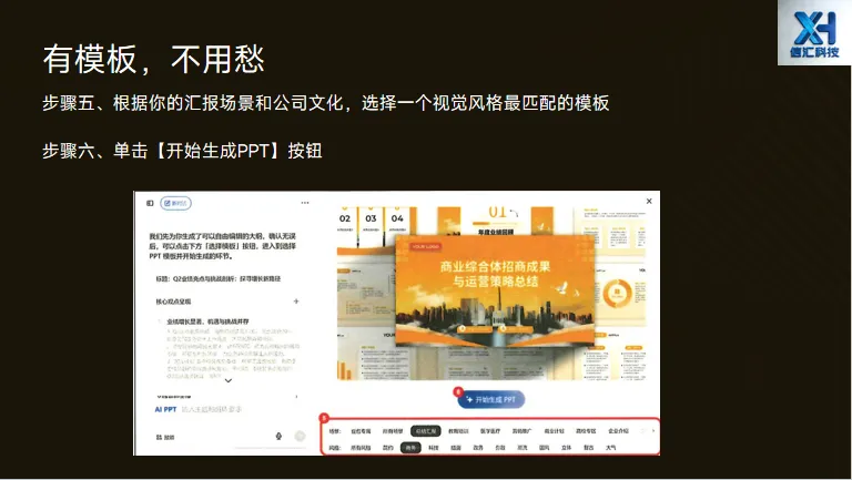 步骤 5:点击【选择模板】,匹配商务 / 简约 / 科技等风格