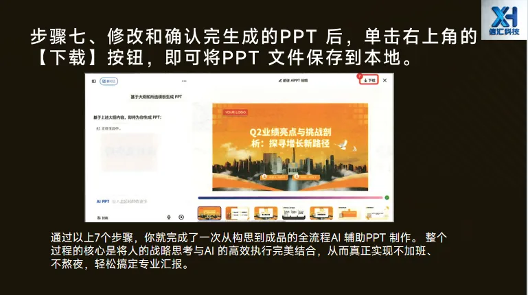 把这些信息交给 AI,就能生成逻辑清晰的 PPT 骨架。三、第二步:7 步流程,一键生成 PPT