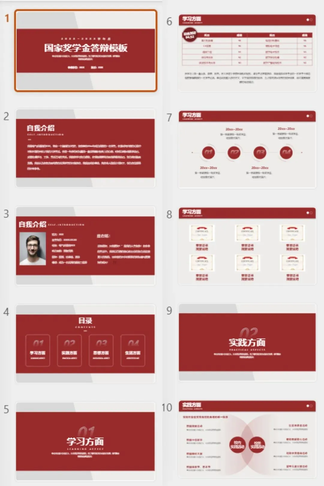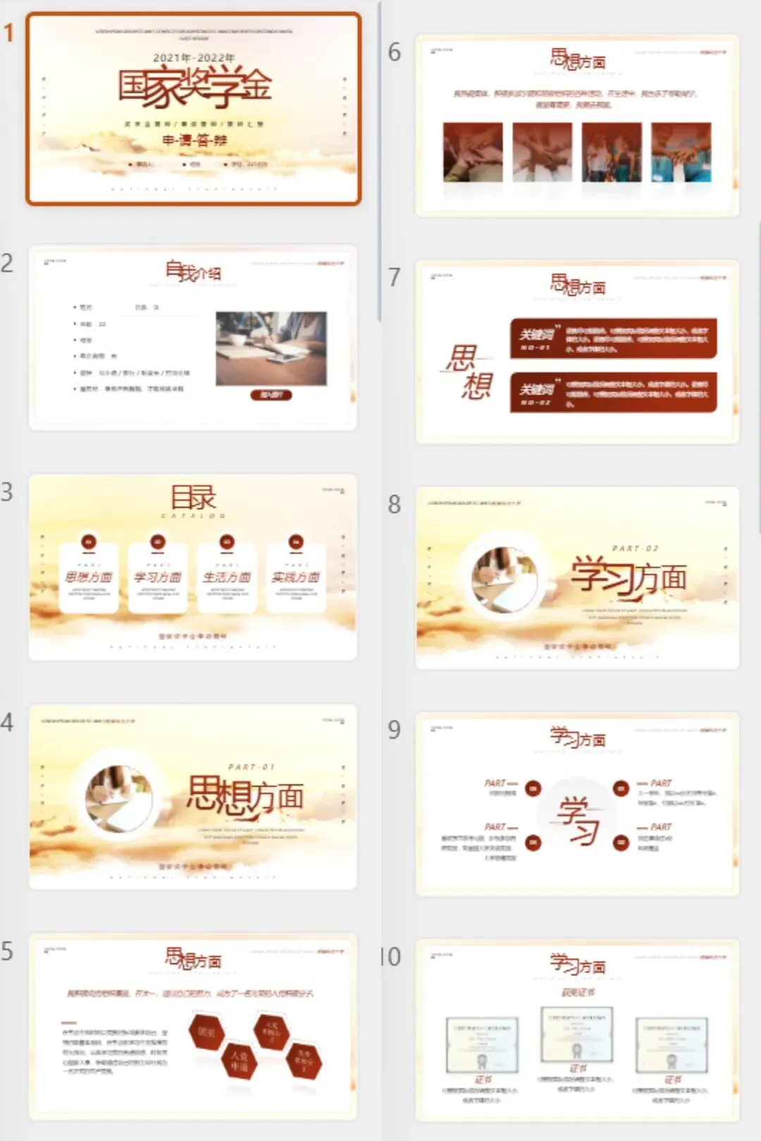 奖学金申请PPT模板|国奖/校奖通用,答辩评优直接套用(免费保存)