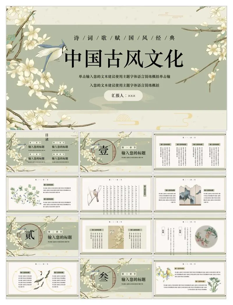 本文分享:中国古风工作汇报文学介绍PPT模板