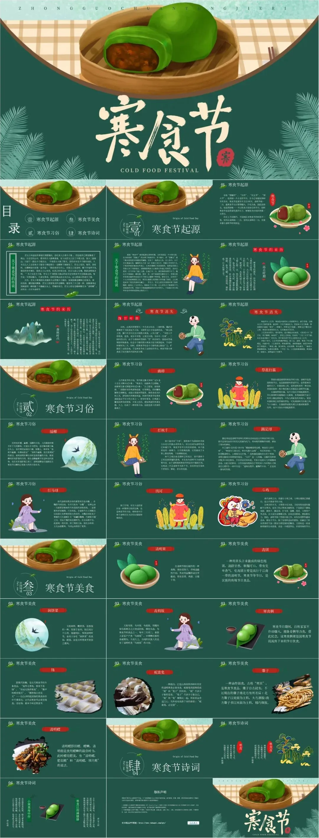 寒食清风拂古意,春和景明忆先贤~ 这份 PPT 模板专为传承寒食文化而来!