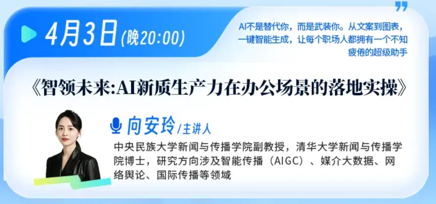 为了帮助大家更好地运用新质生产力,汇贤学堂特别推出了针对职场与办公场景的实操直播课: