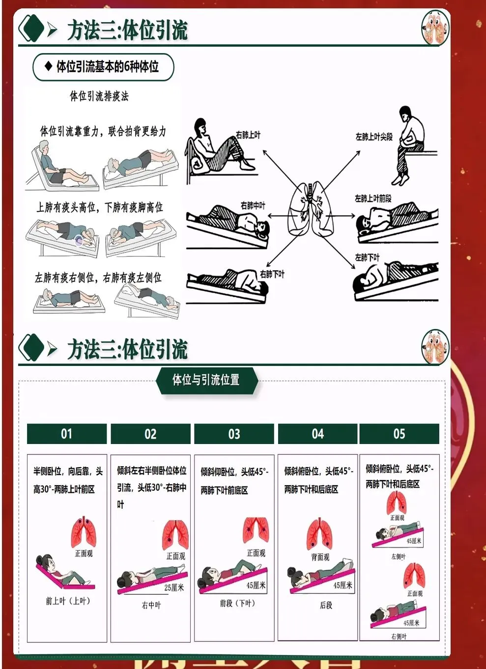 三、体位引流与叩背技巧优化 体位引流利用重力作用促进痰液排出。根据病灶位置选择合适体位,原则上患侧在上,每次引流15-20分钟,每日2-3次。引流前可先进行支气管扩张剂雾化,提高效果。 叩背技巧直接影响排痰效果。手掌呈杯状,利用腕部力量有节奏叩击背部,从下往上、从外向内。叩背时避开脊柱、肾区、肩胛骨等部位,力量适中,以患者能够耐受为宜。 振动排痰仪的使用日益普及。相比传统叩背,振动排痰能够产生更均匀的力,穿透力更强。使用时要根据患者情况调节频率和时间,一般每次10-15分钟,每日2次。