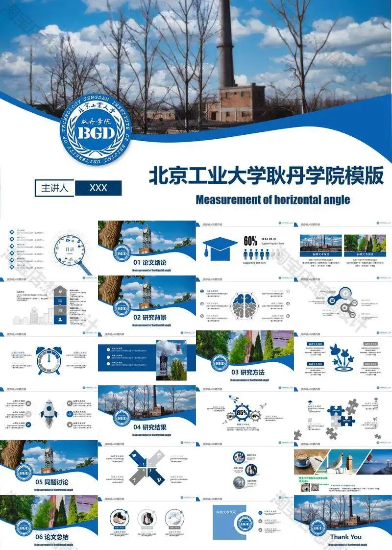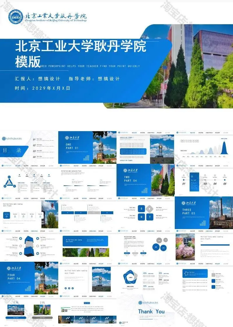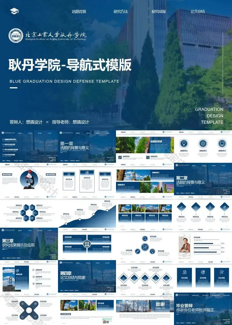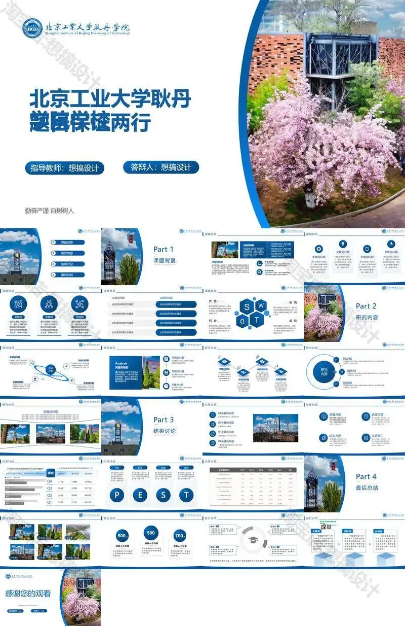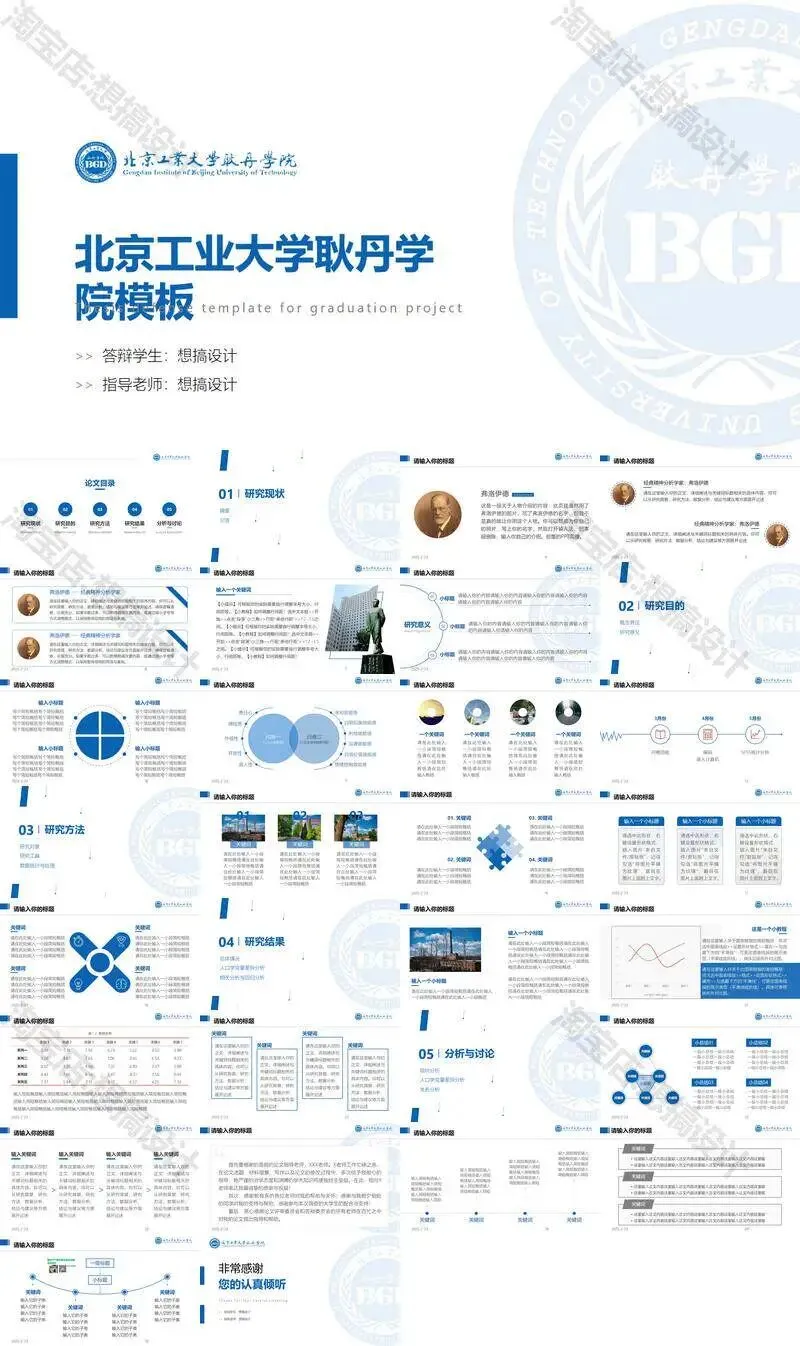 >北京工业大学耿丹学院毕业答辩PPT模板汇报幻灯片课件总结