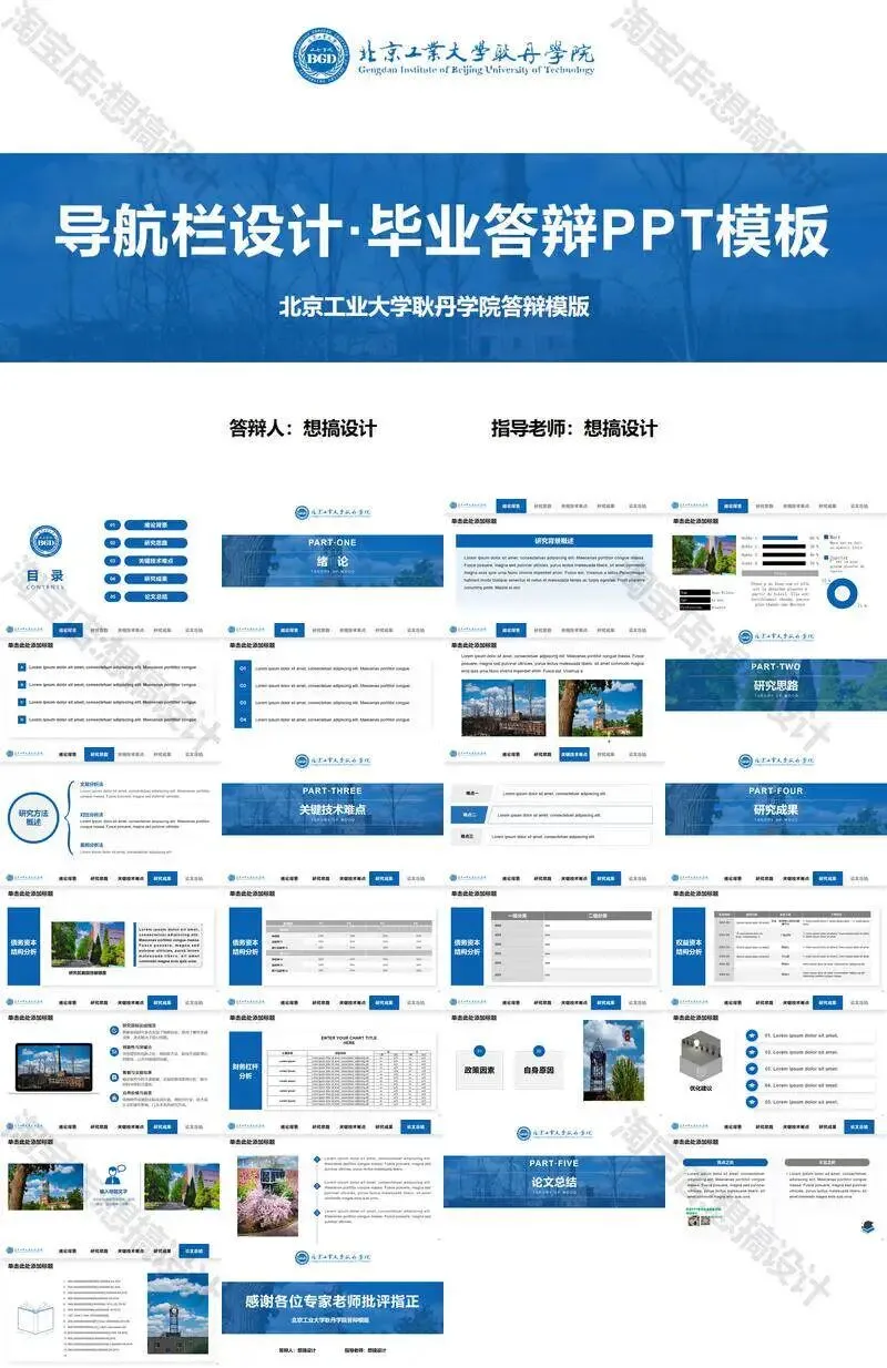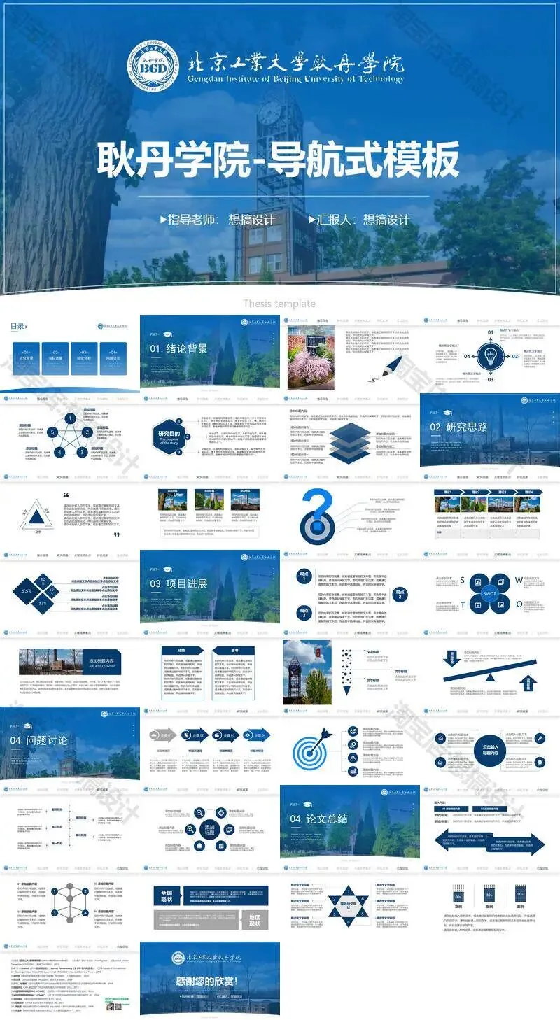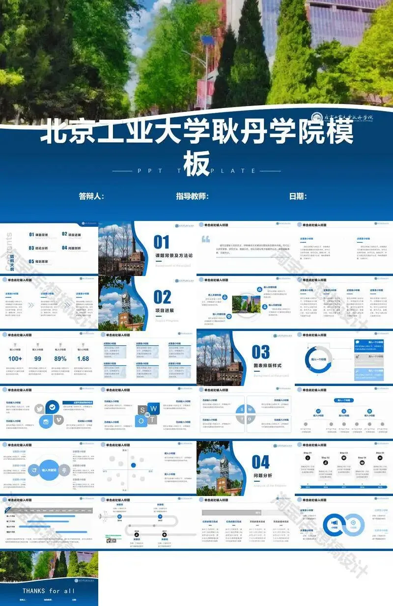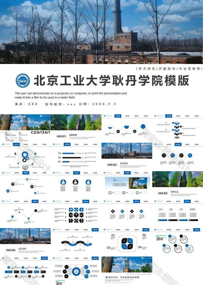 >北京工业大学耿丹学院毕业答辩PPT模板汇报幻灯片课件总结